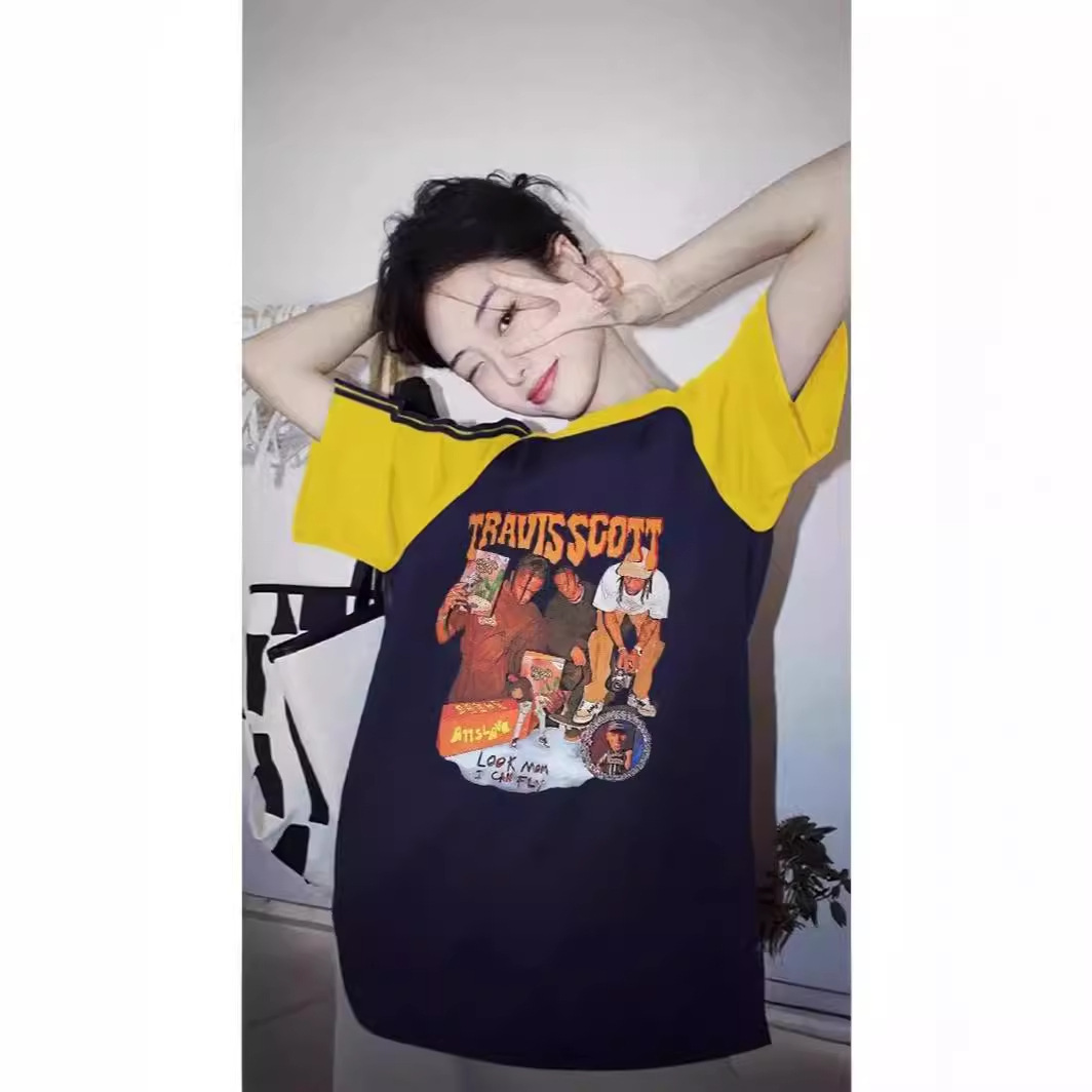 美式复古潮牌情侣装短袖t恤女纯棉夏季小众设计感宽松插肩袖上衣