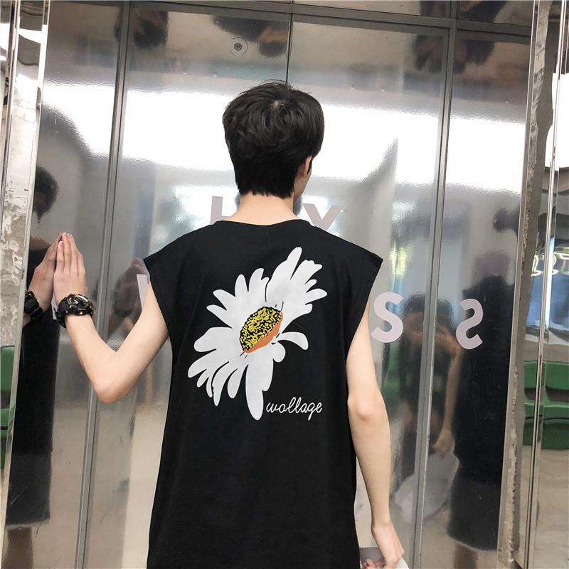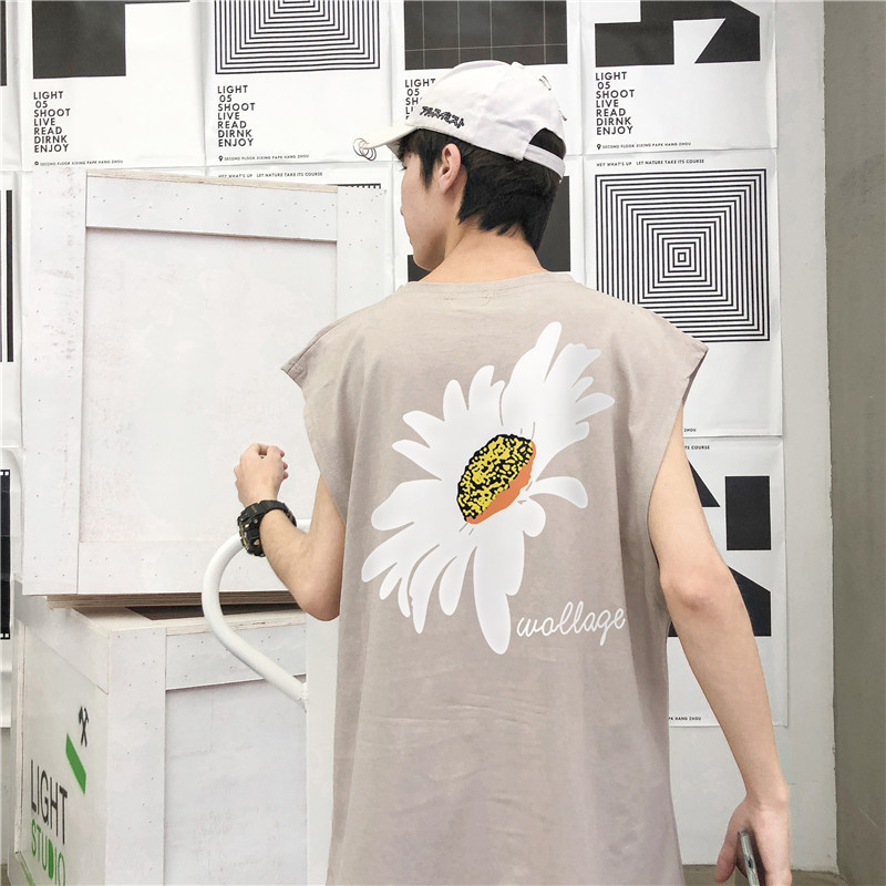 无袖背心男士夏季ins潮牌篮球运动外穿宽松砍袖潮流嘻哈t恤坎肩男