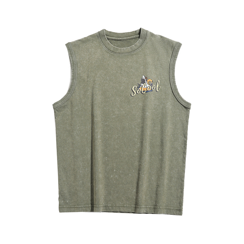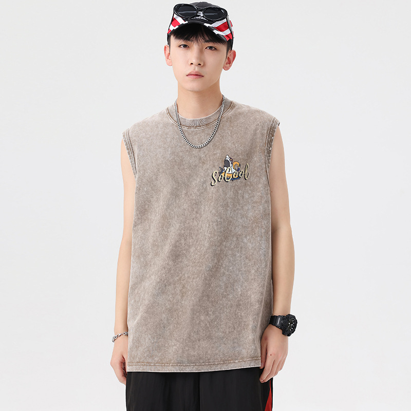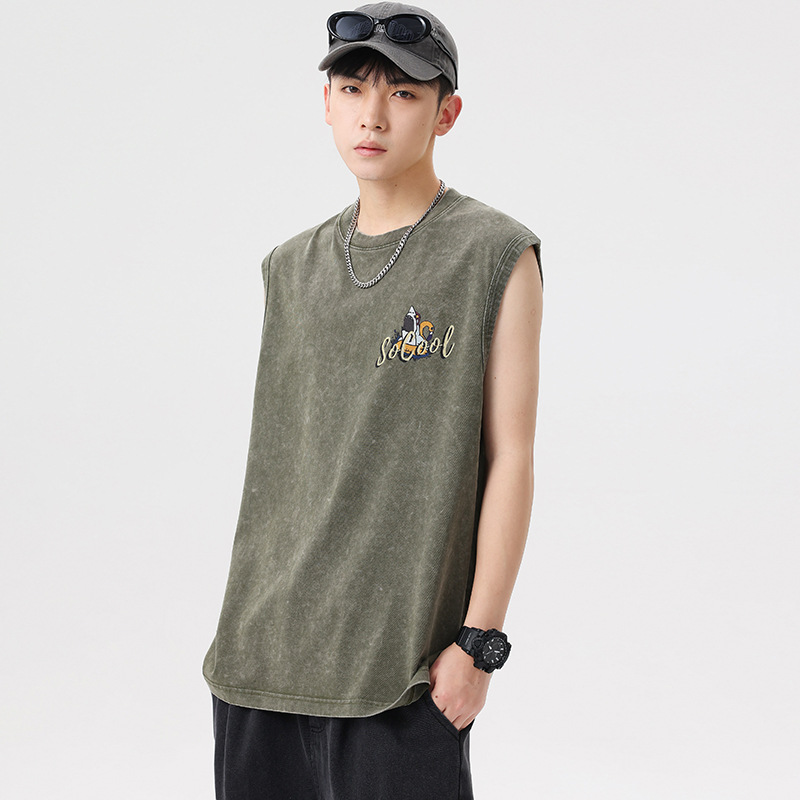 纯棉背心男夏季宽松美式复古水洗做旧无袖t恤潮牌ins外穿男士坎肩