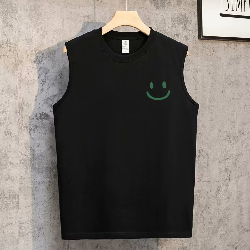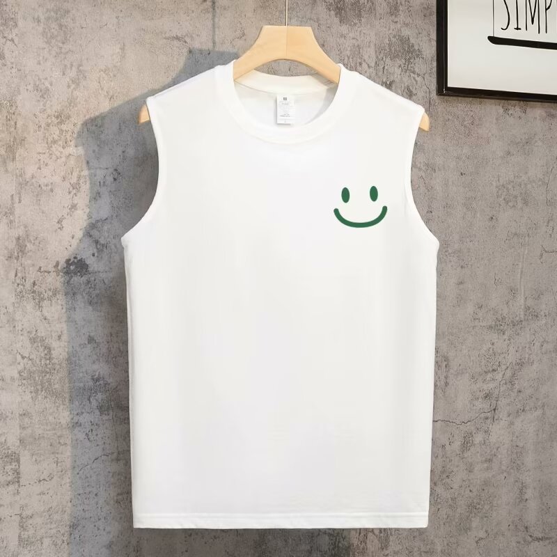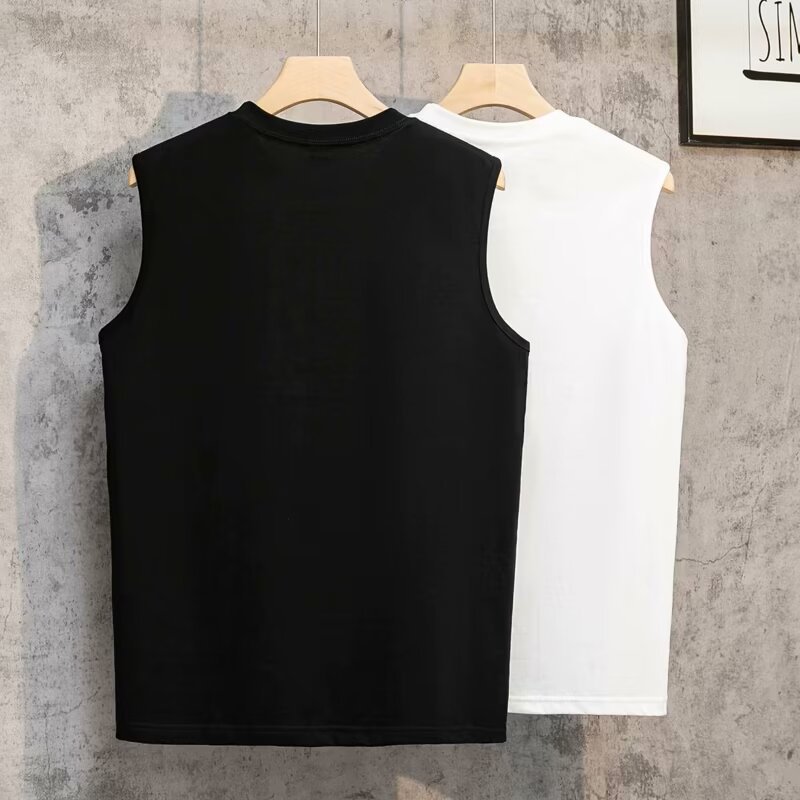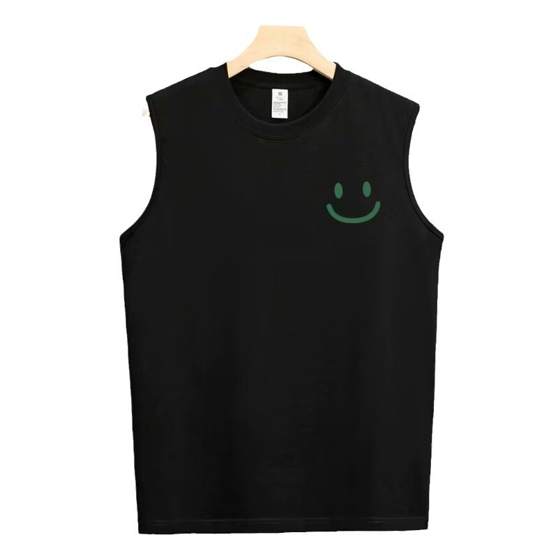 夏季背心潮流宽松印花无袖休闲运动外穿上衣男士圆领短袖套头底衫