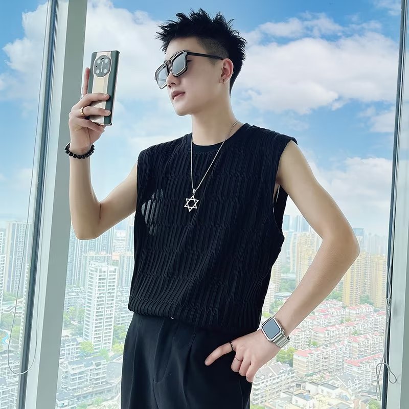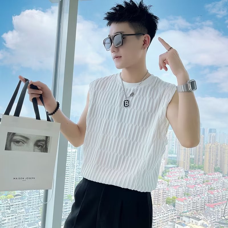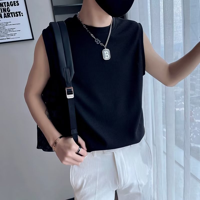 港风背心男士夏季新款夏季坎肩潮流外穿宽松帅气无袖T恤上衣