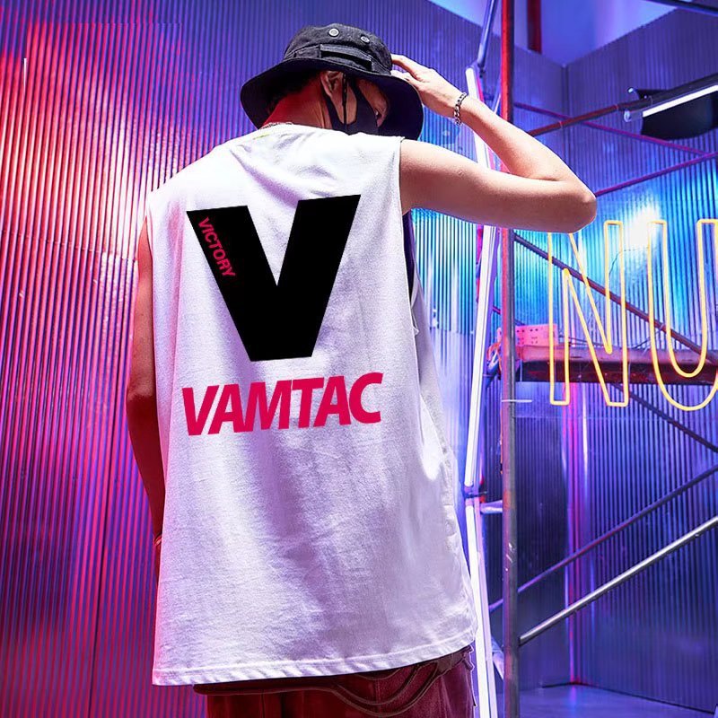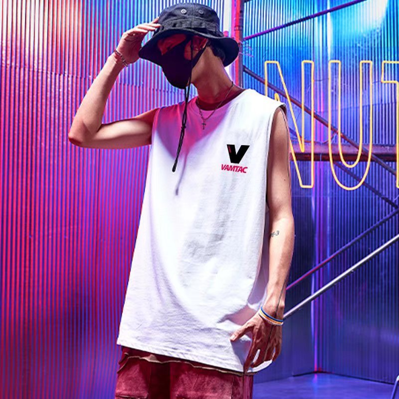 背心男夏季美式运动健身无袖T恤男士阔肩加大码外穿坎肩砍袖男