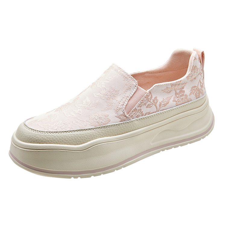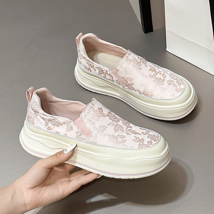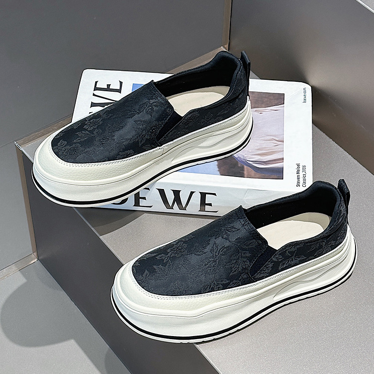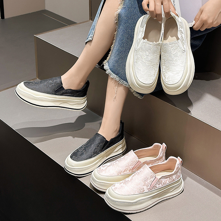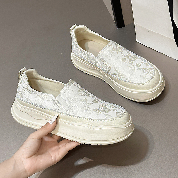 新中式小白鞋女鞋子夏新款免系带丝绸缎面帆布鞋浅口乐福单鞋