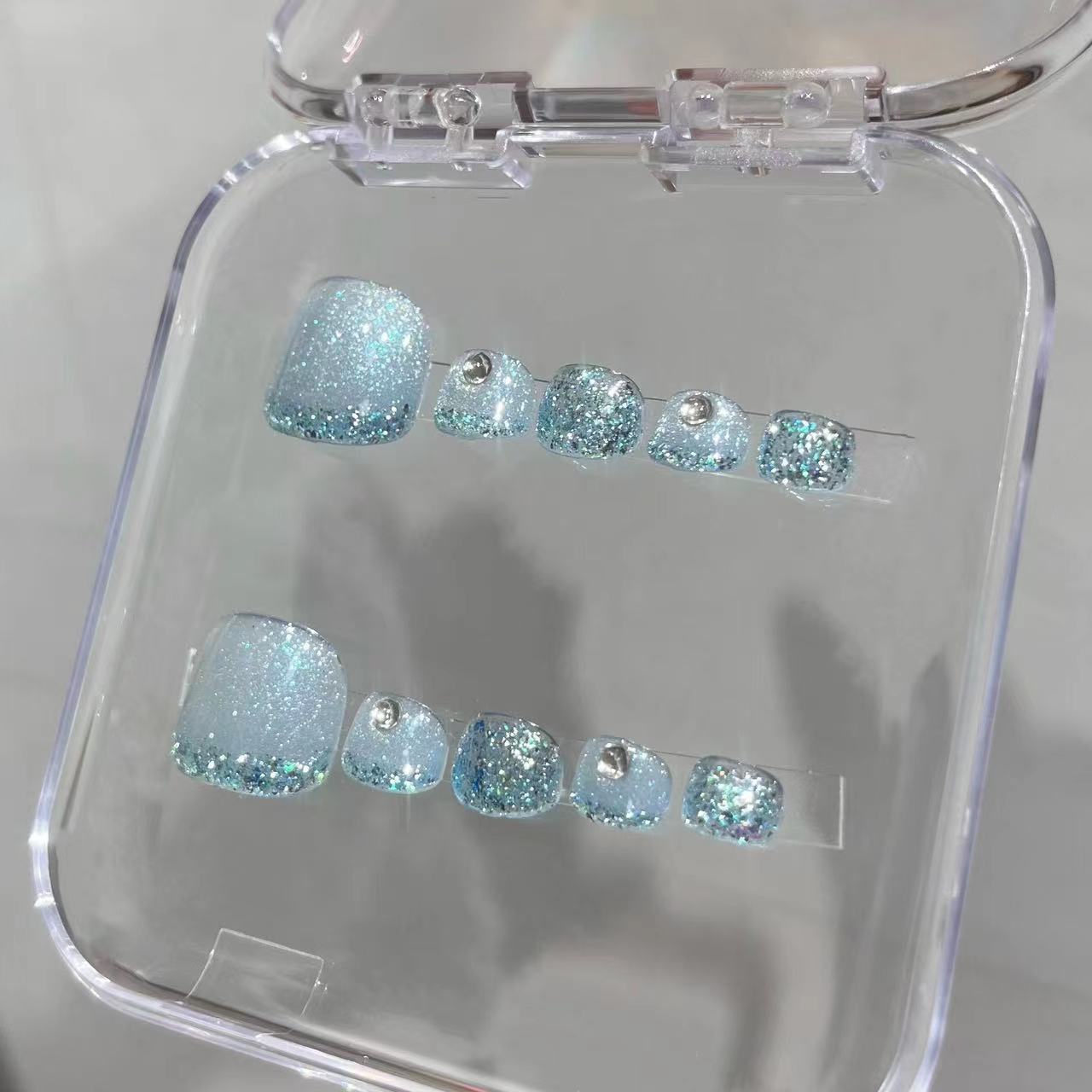 海蓝星辰纯手工穿戴甲纯欲猫眼细闪珍珠脚甲穿戴甲可拆卸重复使用