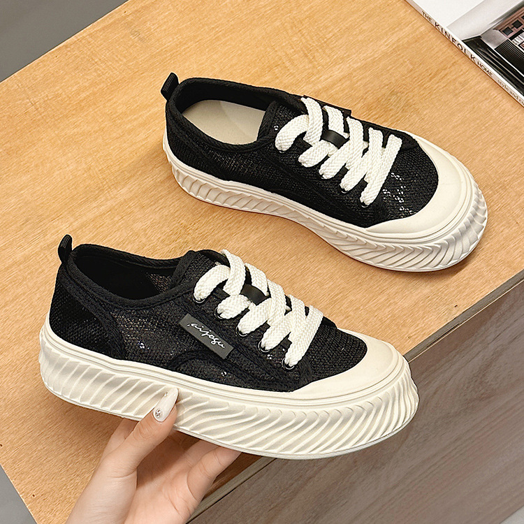 网面渔夫鞋女夏季新款女鞋百搭厚底珠光片夏款单鞋休闲乐福鞋