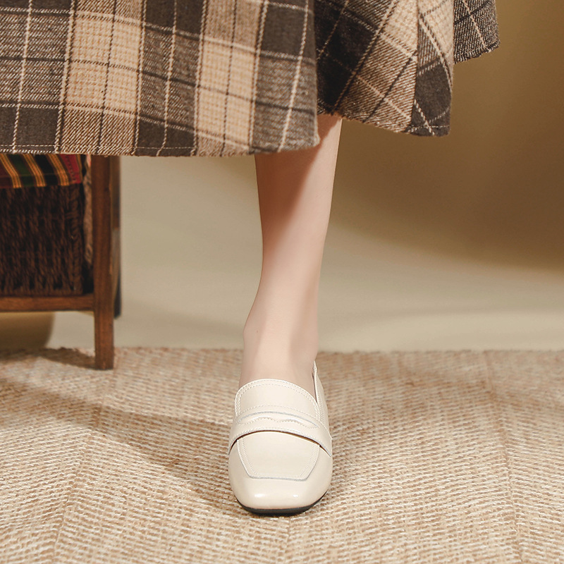 英伦女鞋春新款复古方头粗跟休闲单鞋简约软皮四季中跟乐福鞋