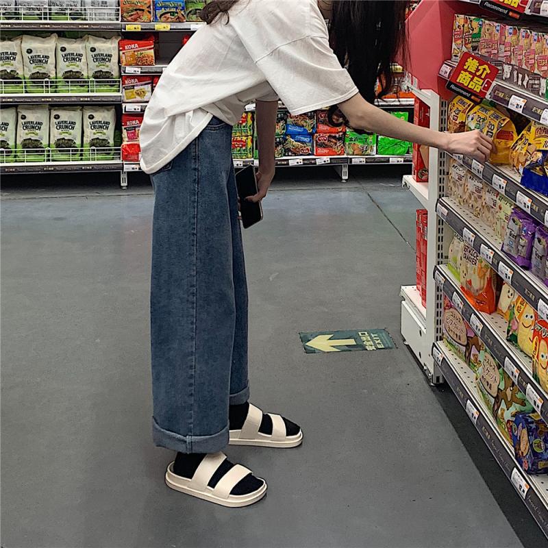 拖鞋女ins潮港味原宿风夏季学生休闲外穿复古双带厚底沙滩凉拖女