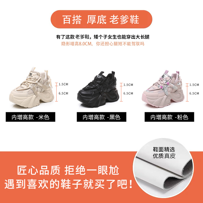 正品内增高老爹女鞋年春季新款厚底百搭显瘦运动休闲鞋0098-8