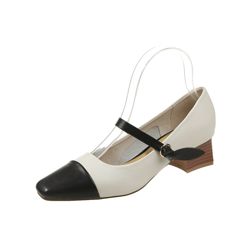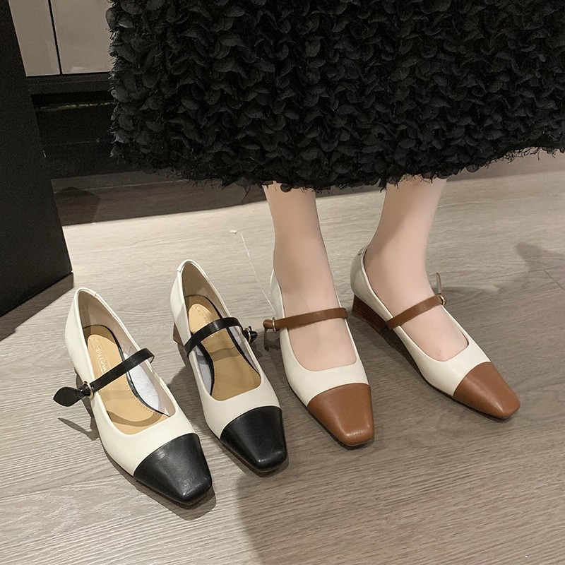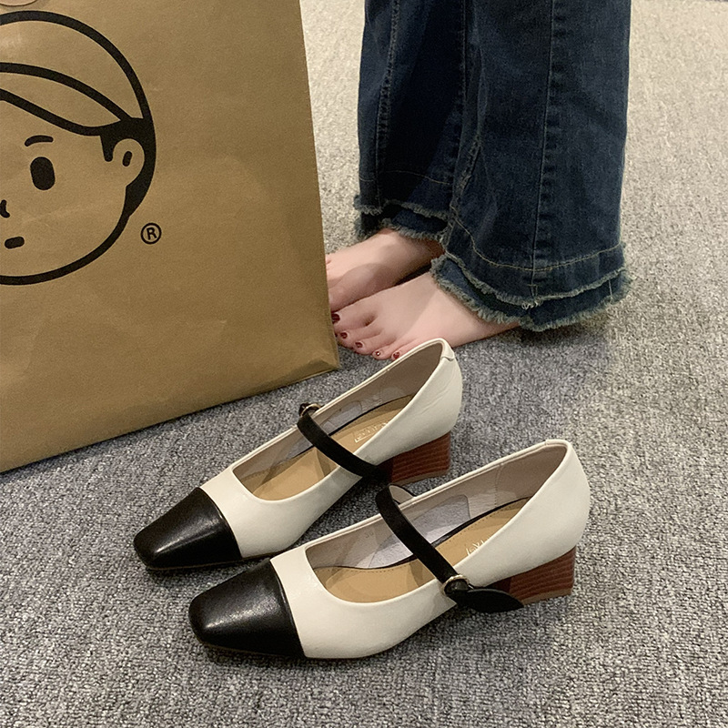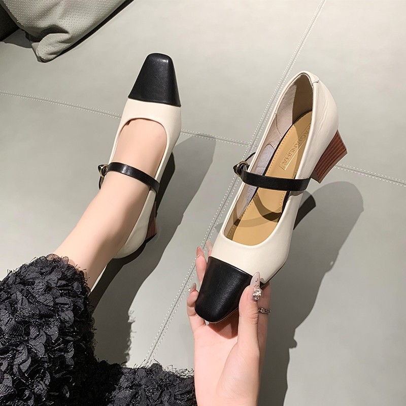 小香风一字扣带粗跟单鞋女年秋季新款方头法式复古玛丽珍女鞋