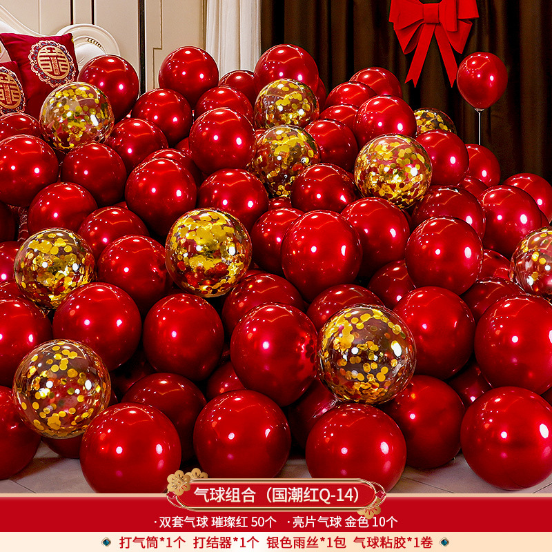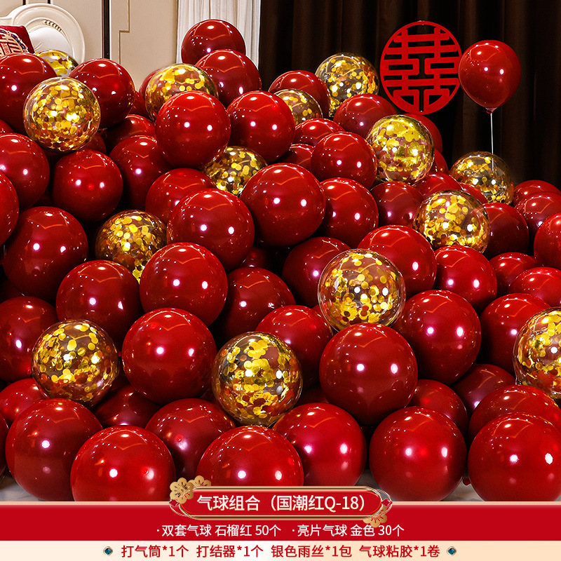 双层方喜气球50+双层石榴红20个