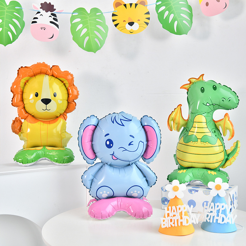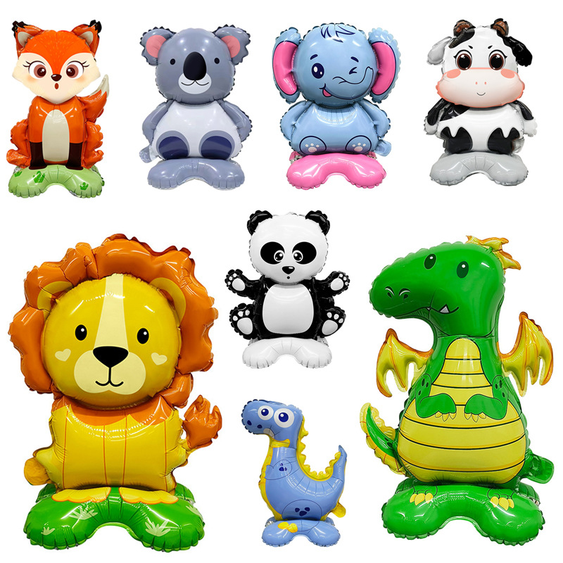 网红可站立底座卡通动物铝膜气球活动地推引流派对布置桌面装饰