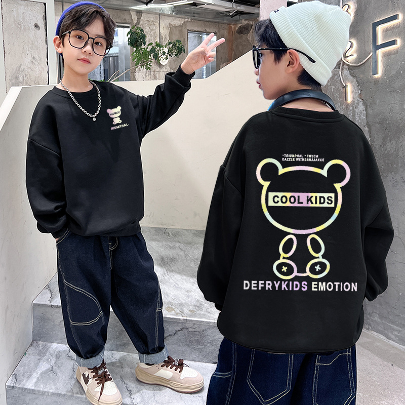 春秋秋冬男童卫衣加绒新款宽松圆领韩版中大童潮酷字母上衣长袖