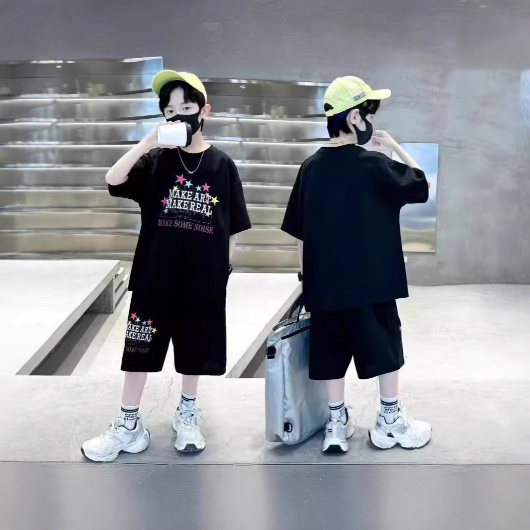 童装男童夏季2025新款中大童韩版洋气休闲宽松字母时髦套装两件套
