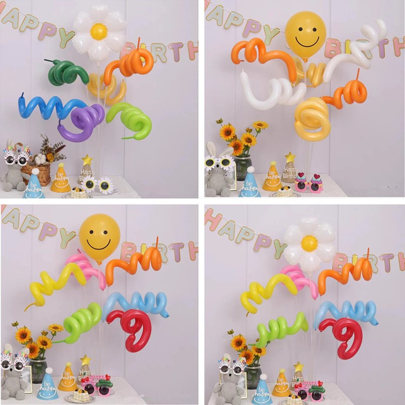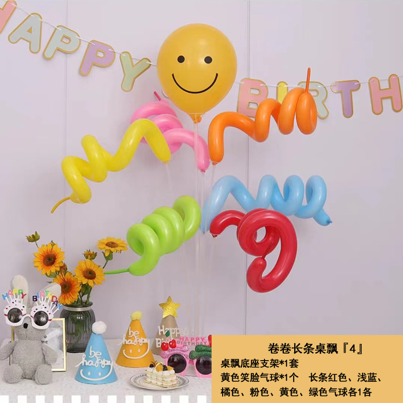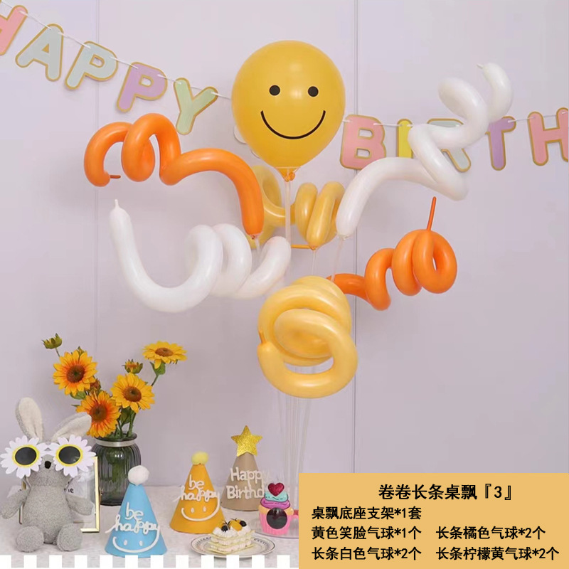 ins笑脸彩色卷卷长条桌飘气球野餐具宝宝生日派对布置装饰摆件