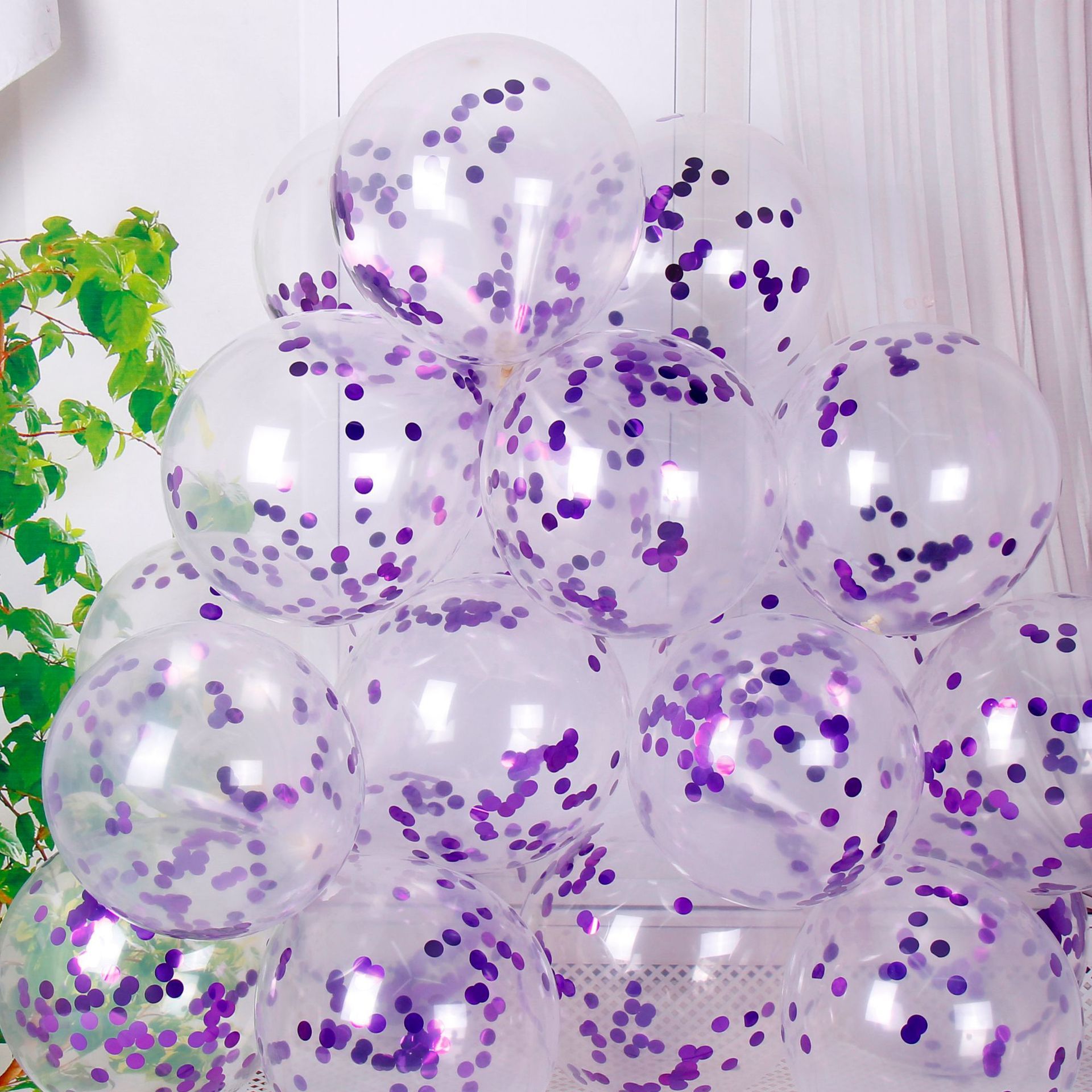 12寸亮片气球金色铝箔五彩魔力透明乳胶纸屑气球生日派对装饰用品