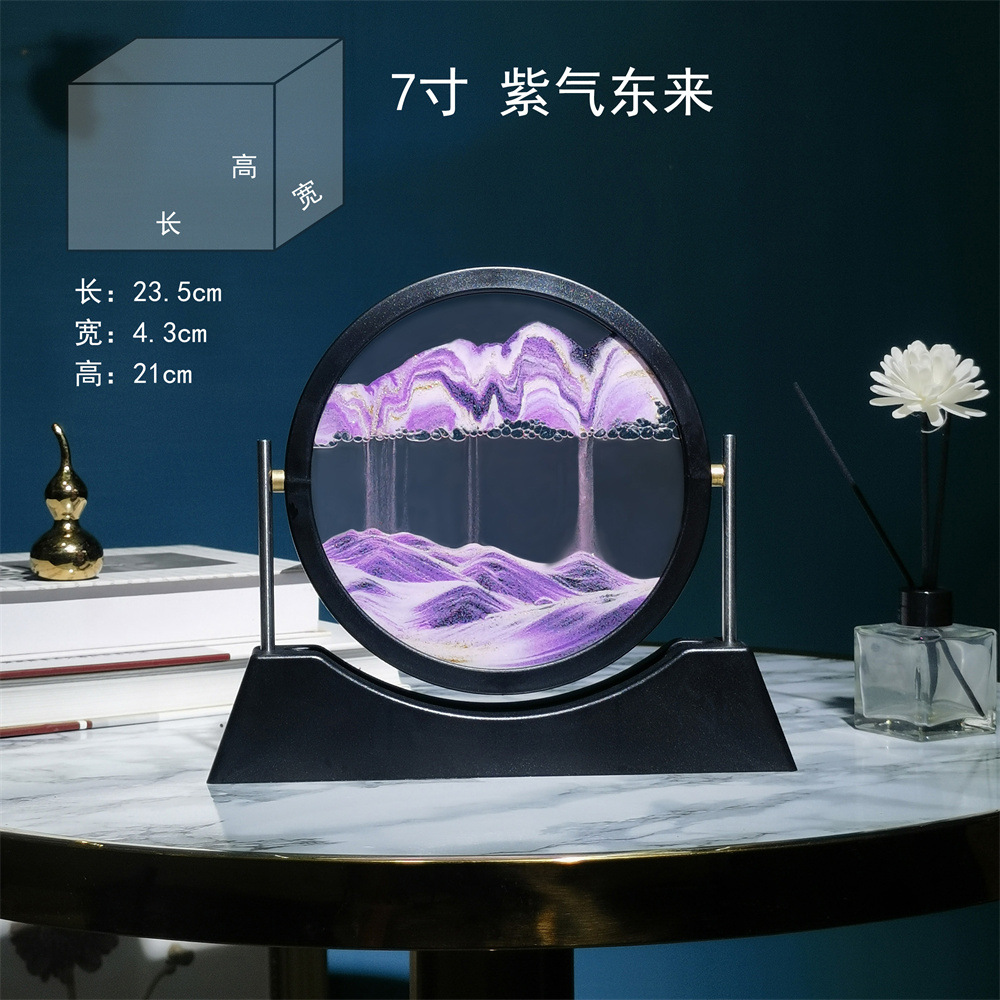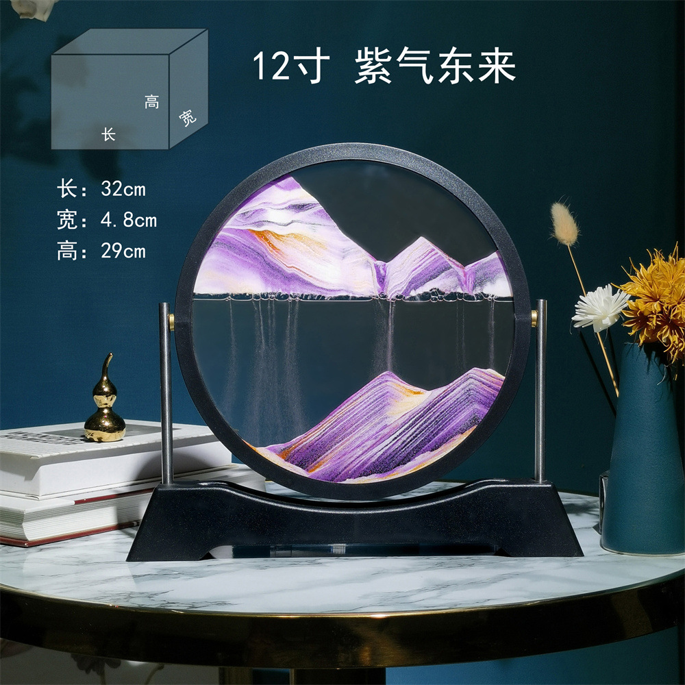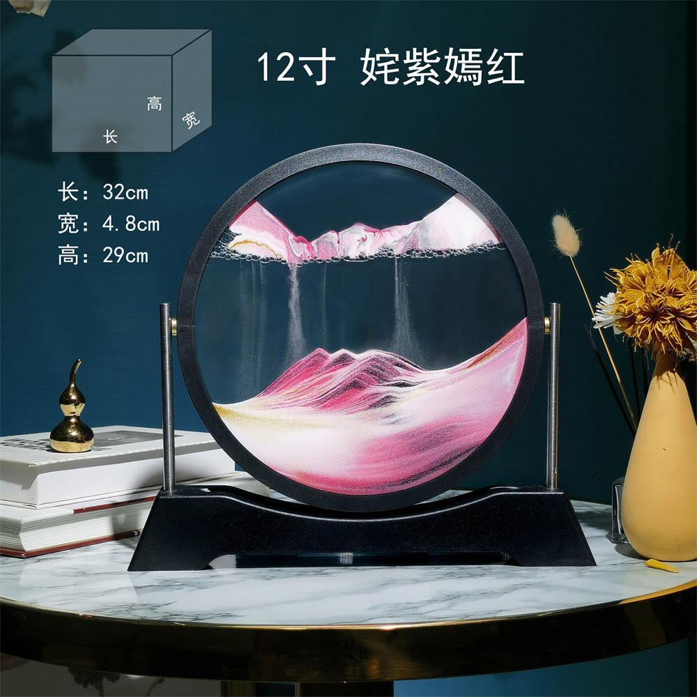 圆形3D玻璃流沙画翻转轻奢家居沙漏礼品创意沙画工艺品桌面摆件