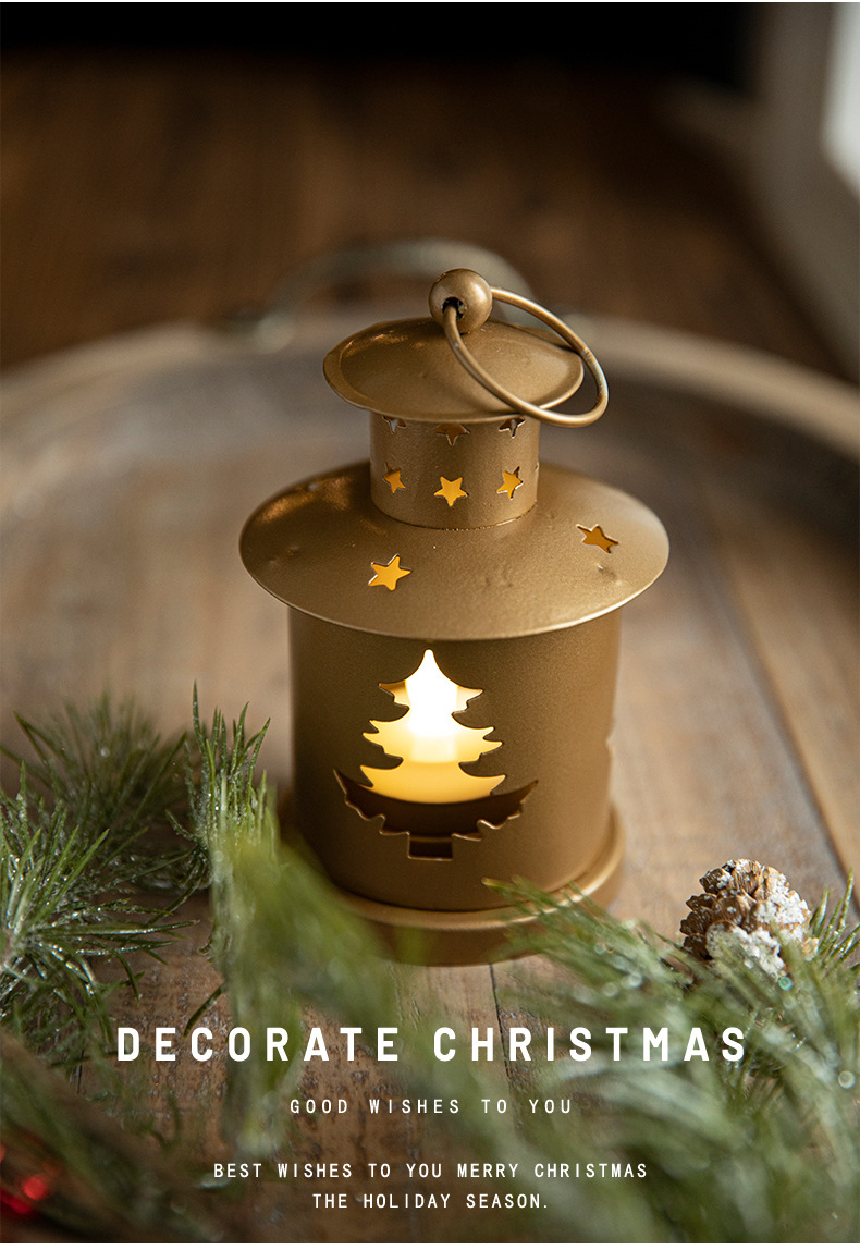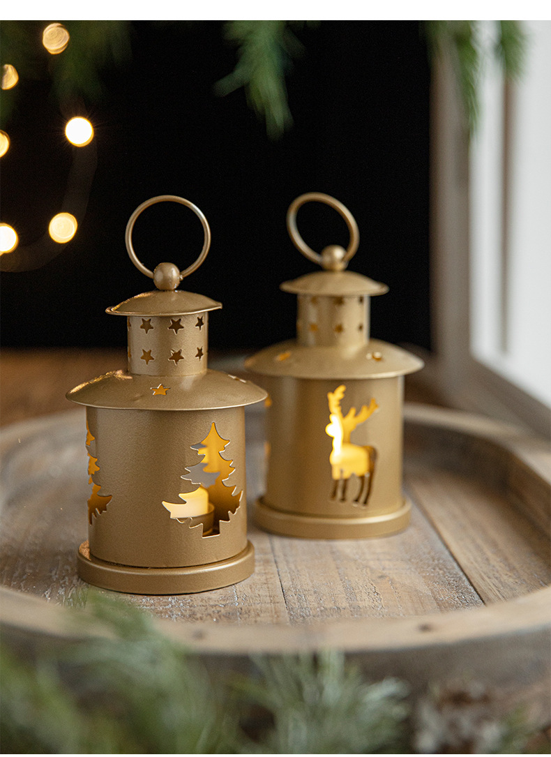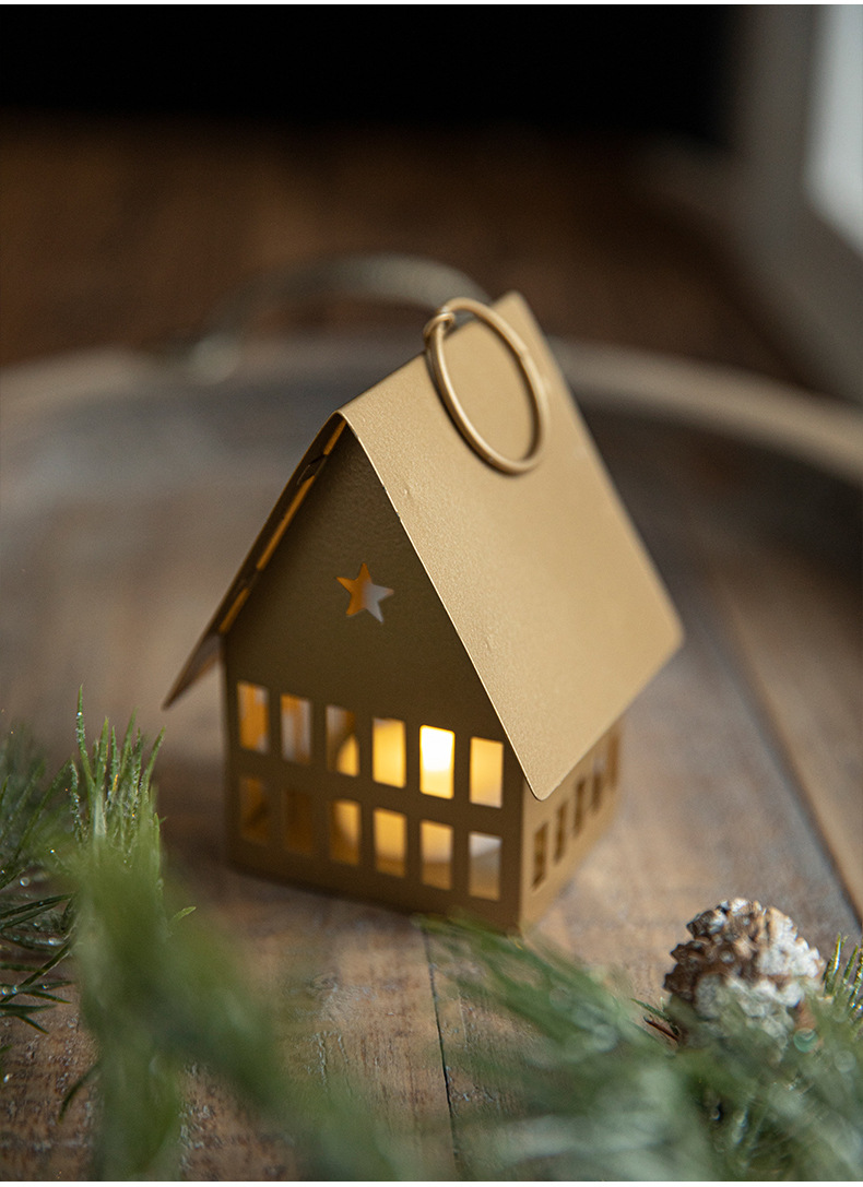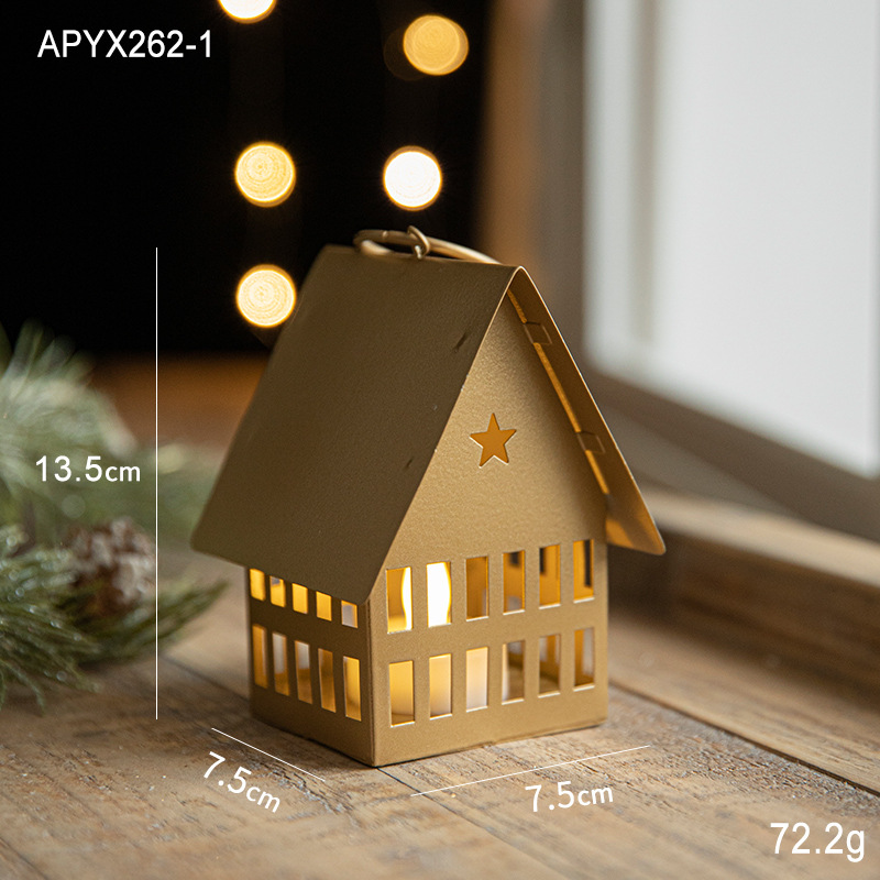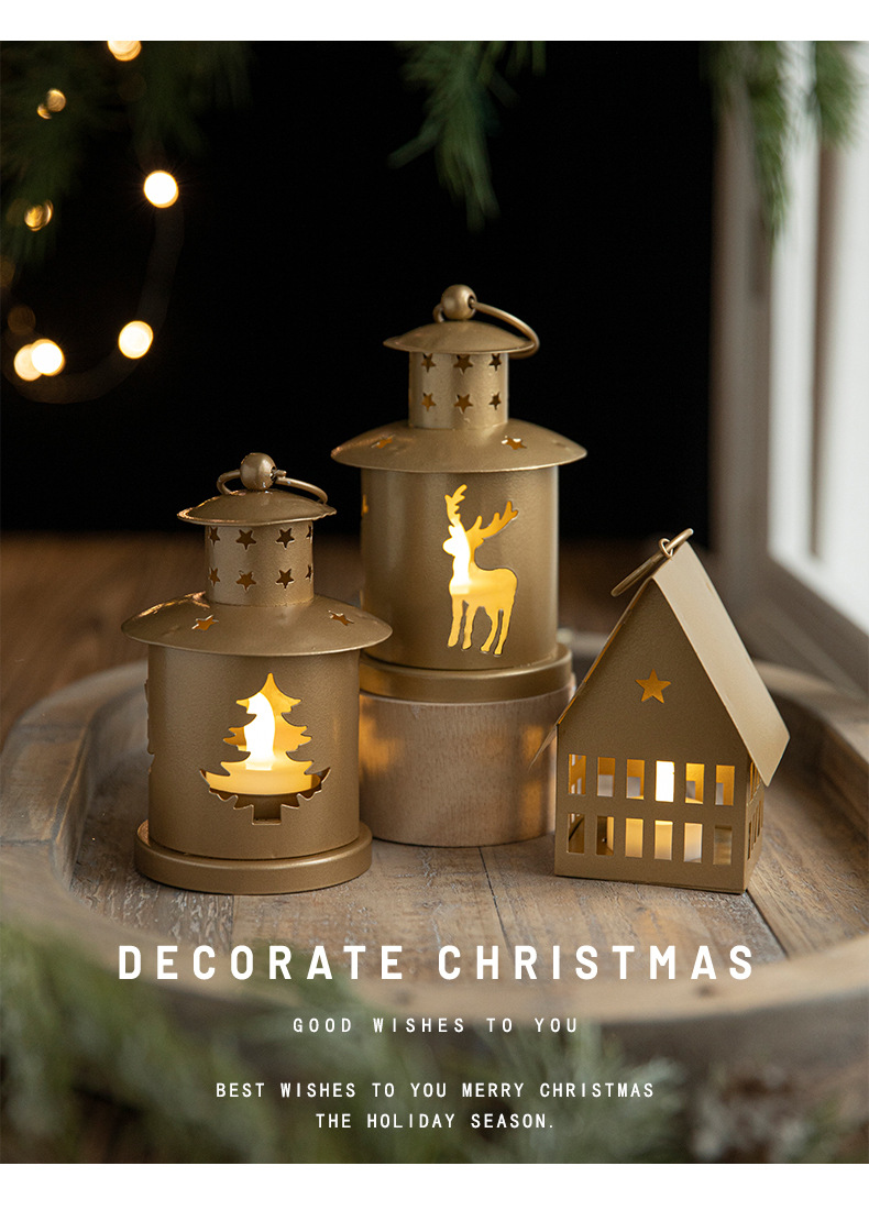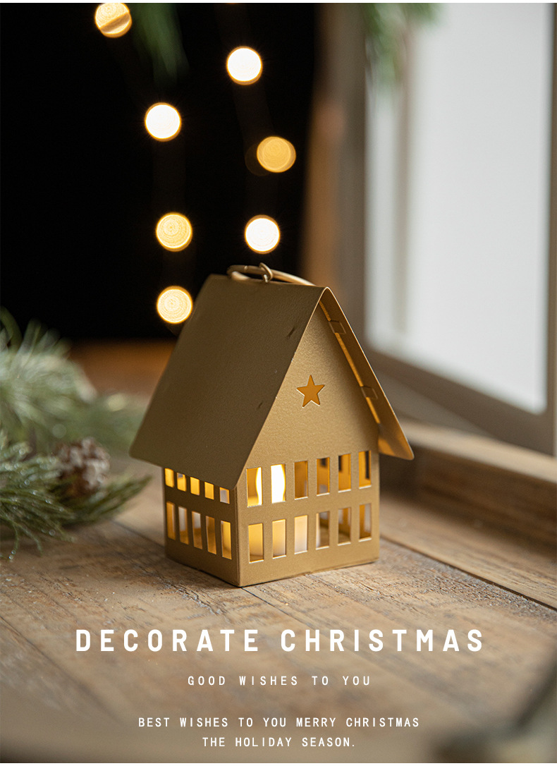 跨境新款圣诞节复古铁艺烛台房子圣诞创意风灯餐桌桌面摆件装饰品