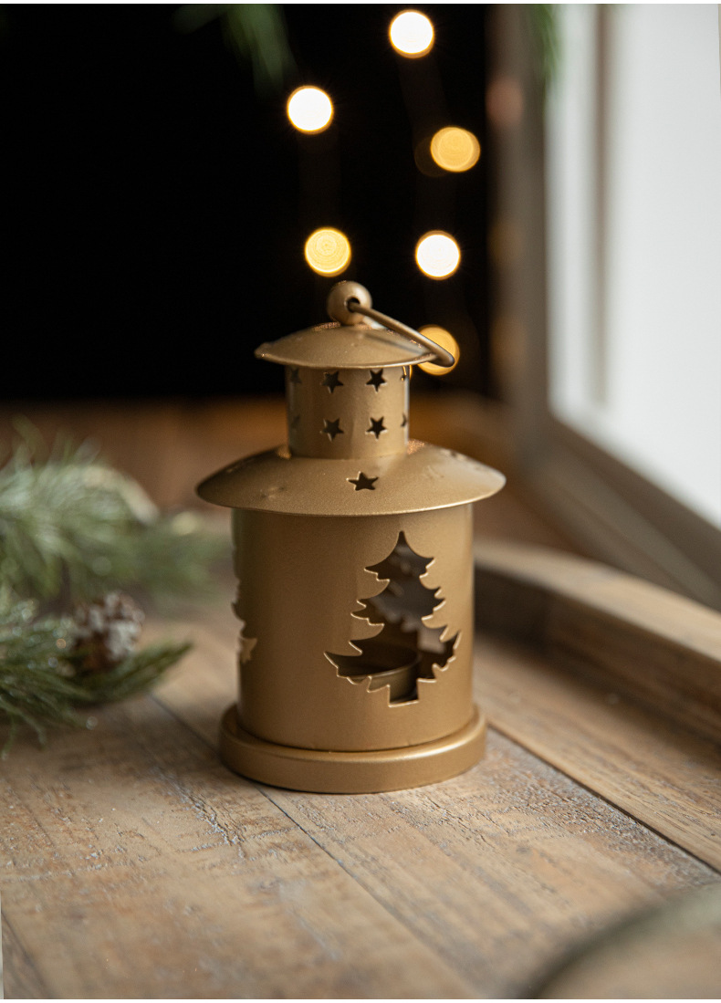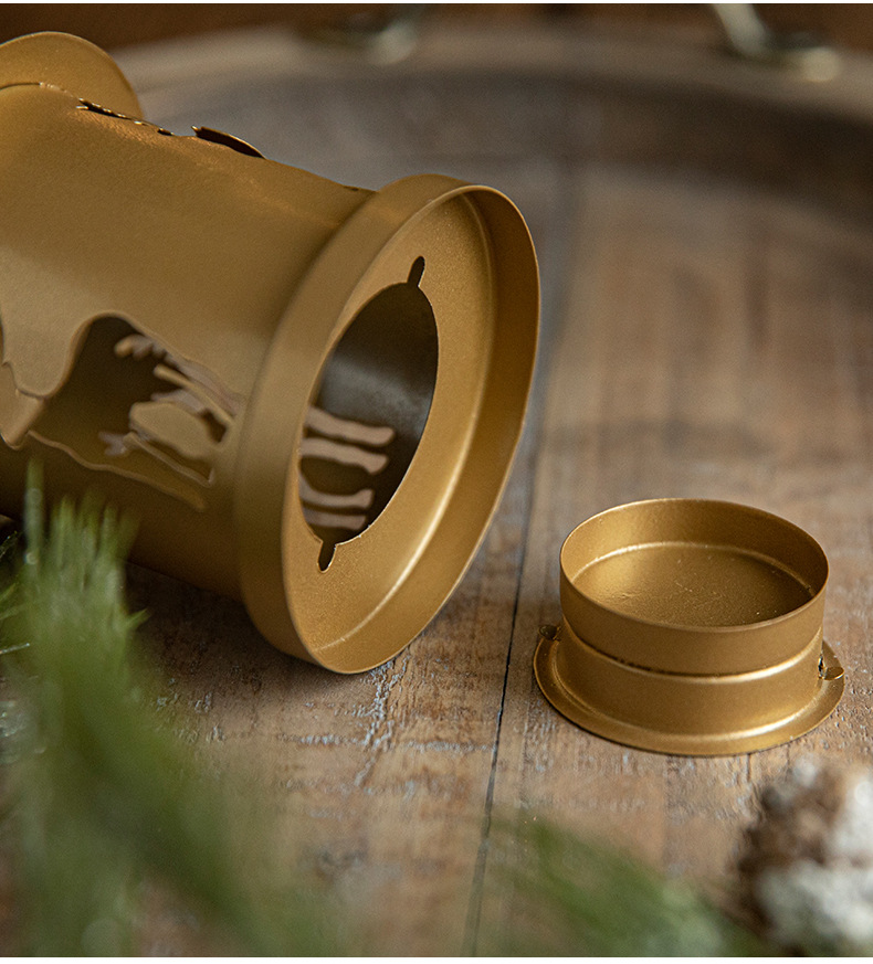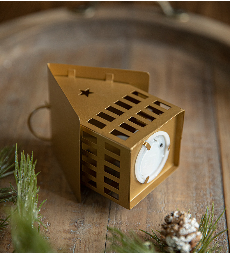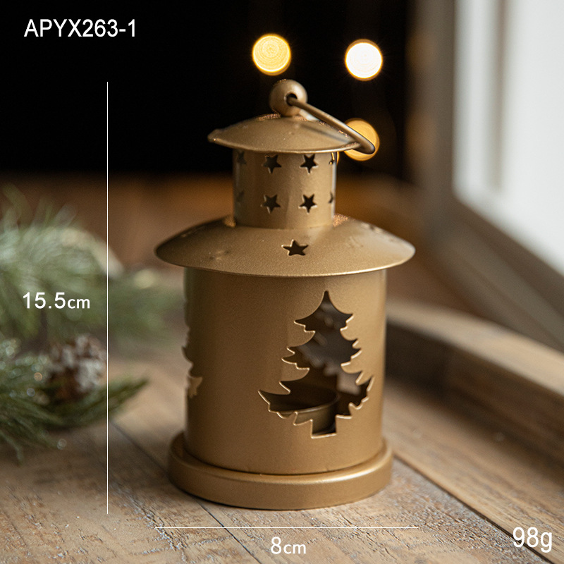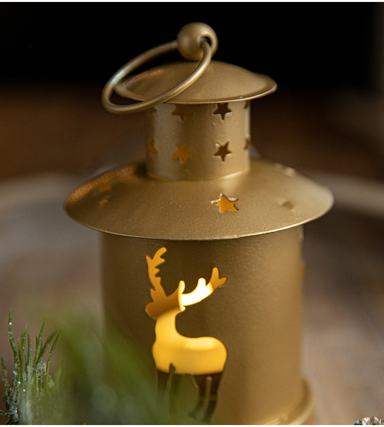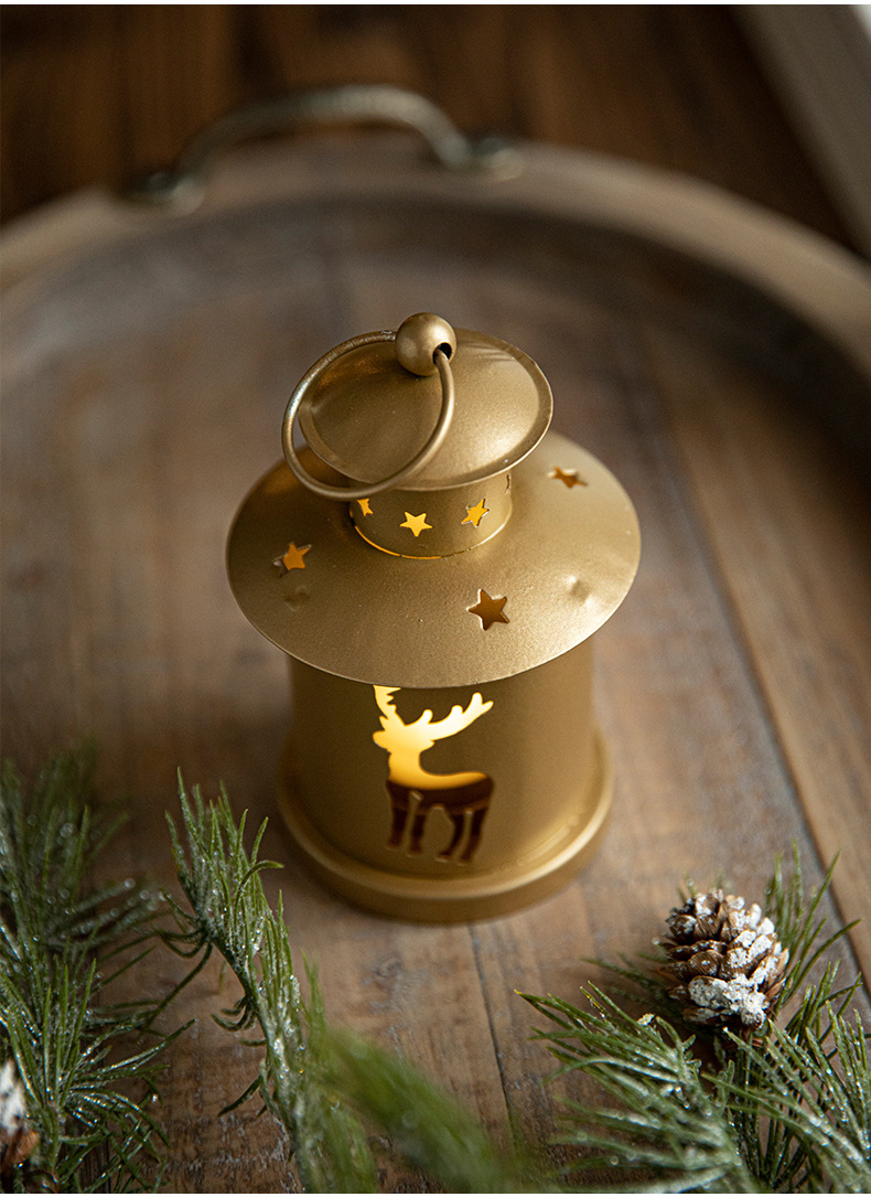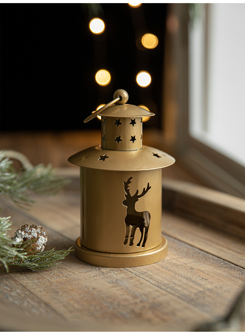 跨境新款圣诞节复古铁艺烛台房子圣诞创意风灯餐桌桌面摆件装饰品