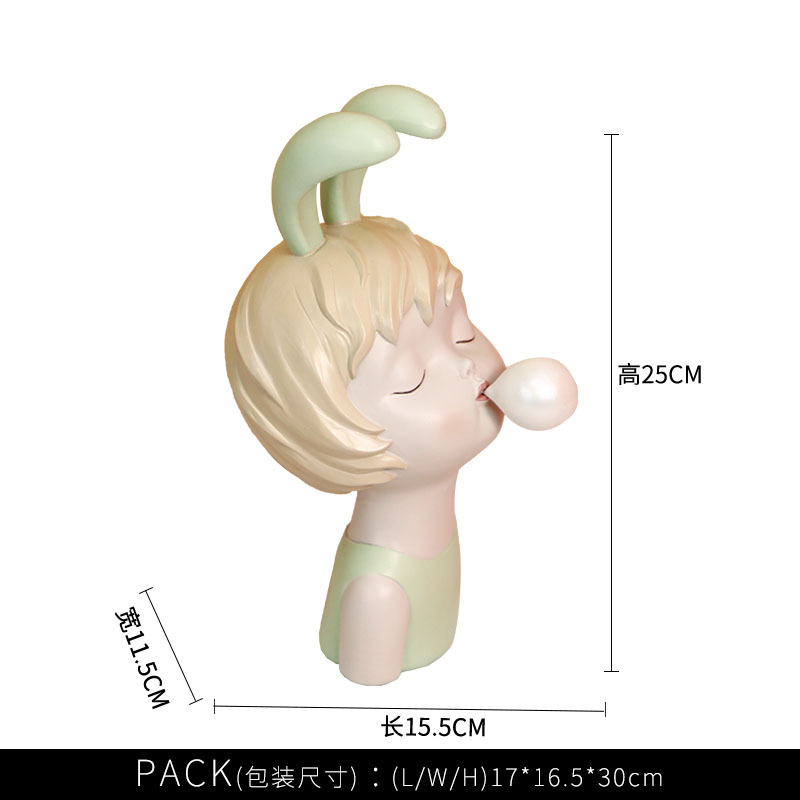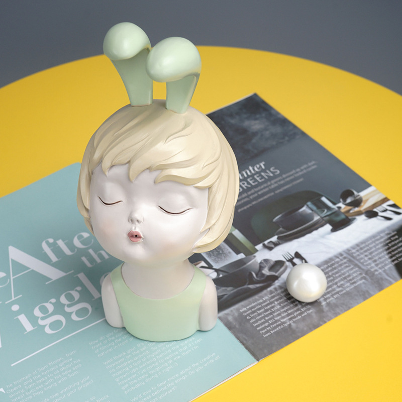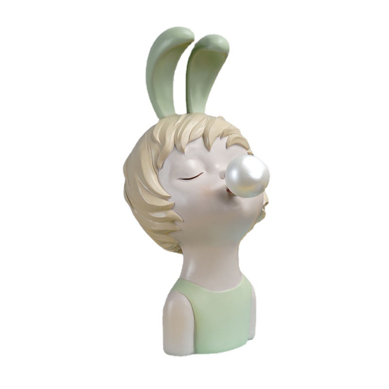 北欧风格潮流树脂工艺品兔小孩卡通家居客厅样板间摆件装饰品跨境