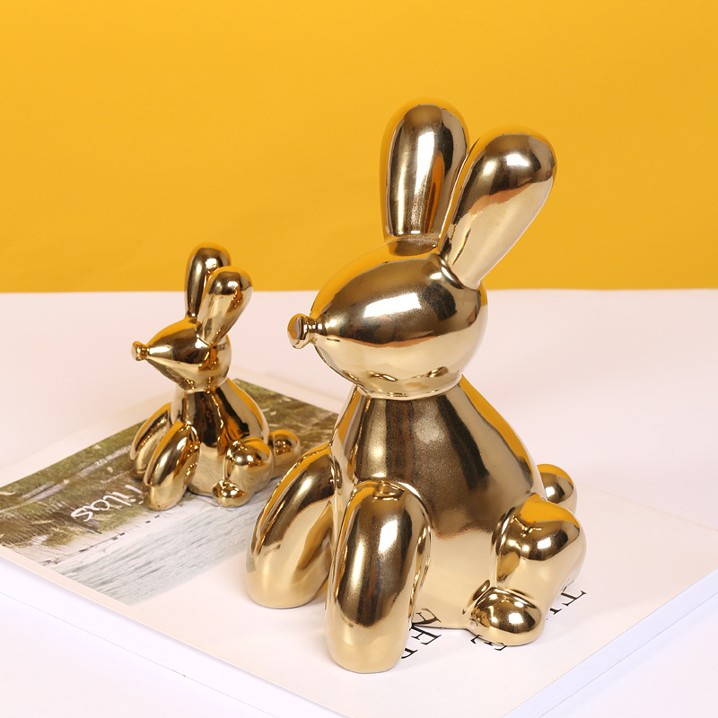 北欧家居创意现代抽象摆件样板间客厅玄关金色气球动物装饰品摆设
