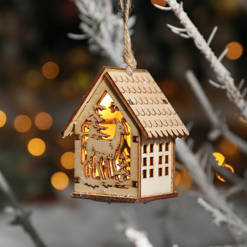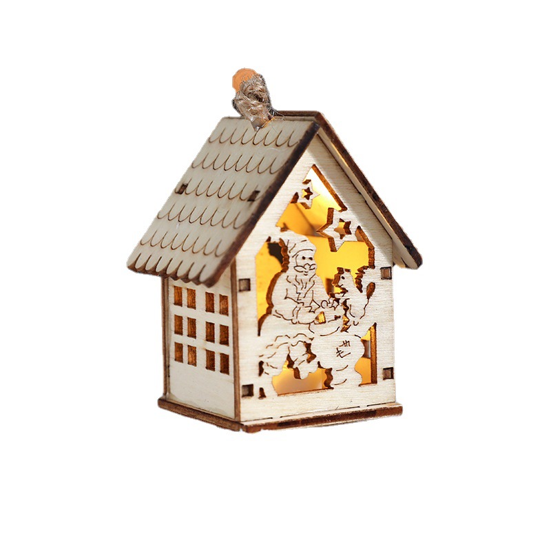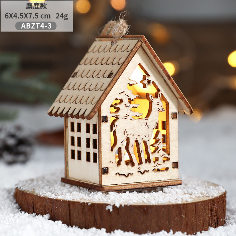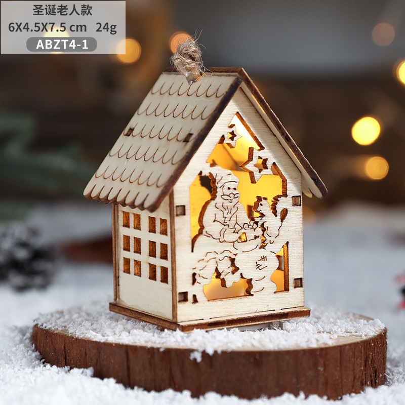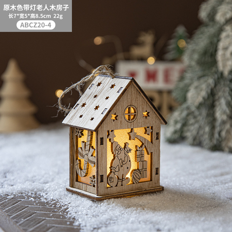 新品圣诞小房子木质创意小摆件灯吊饰挂饰圣诞节装饰品礼物