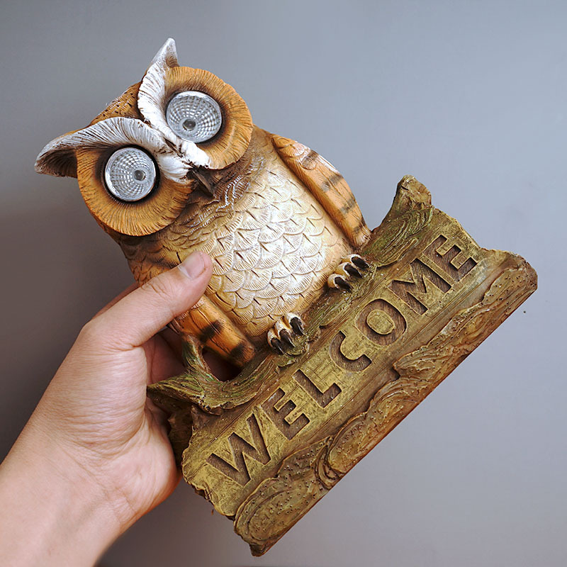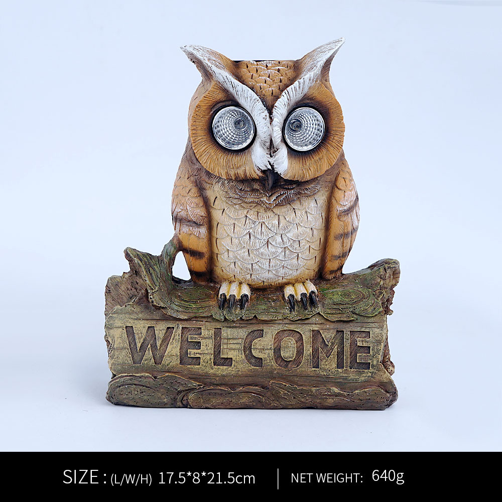 复古店铺门牌挂饰欢迎光临猫头鹰装饰庭院太阳能照明造景装饰摆件