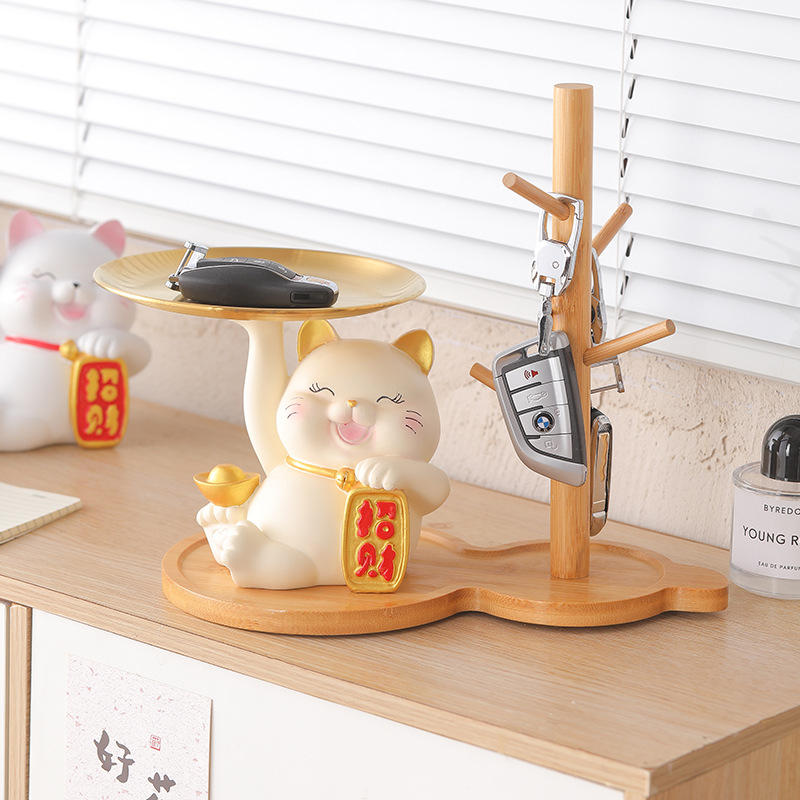招财猫玄关钥匙收纳摆件客厅现代家居桌面装饰品乔迁新居送礼