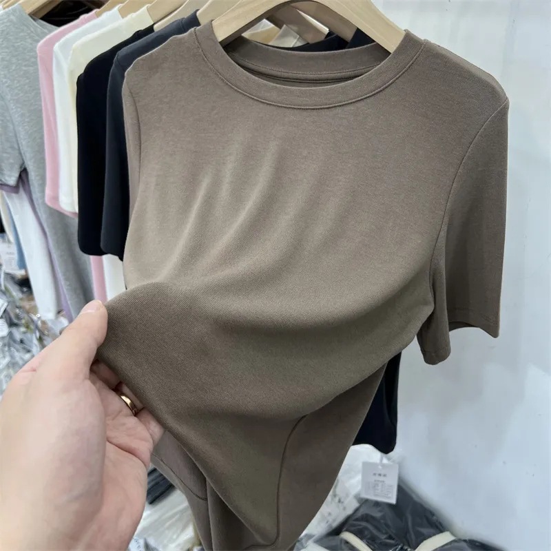 欧货纯色百搭柔软亲肤短袖T恤女夏装新款修身显瘦体恤衫上衣