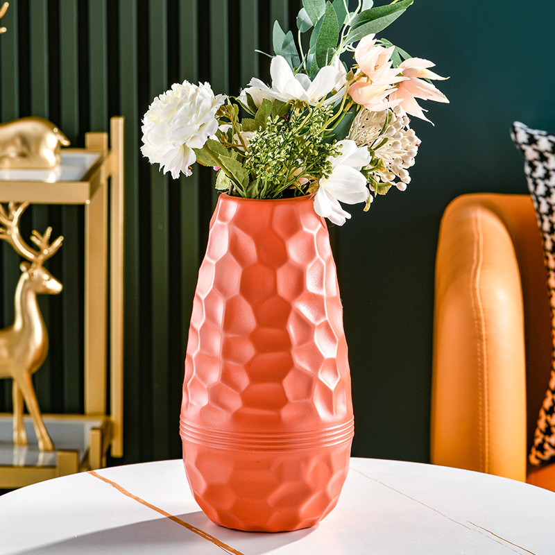 塑料花瓶创意北欧风菱形花瓶时尚简约防摔仿瓷花瓶家居摆件花盆
