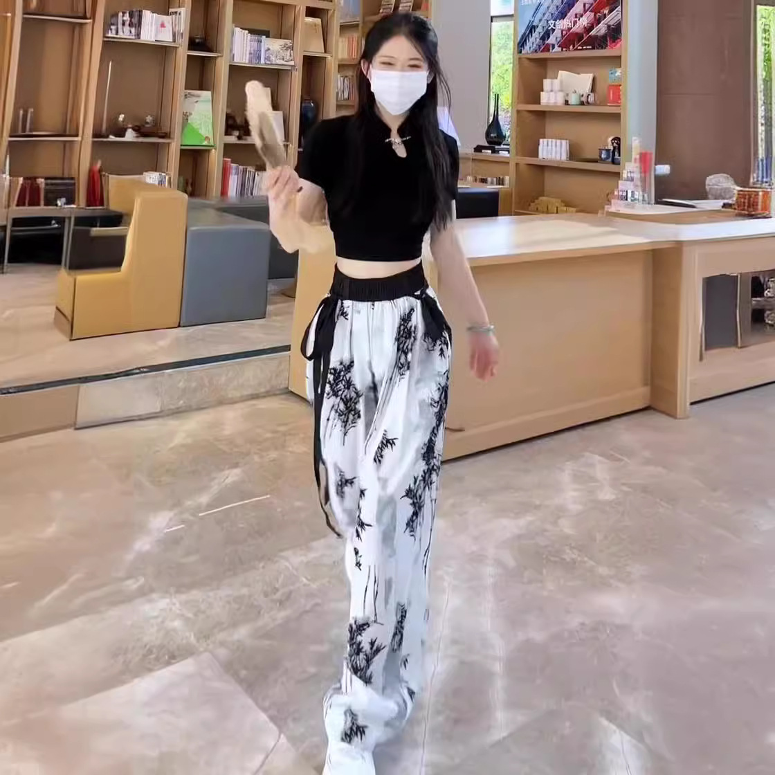 新中式国风时尚休闲套装女夏季新款显瘦短款T恤阔腿裤两件套
