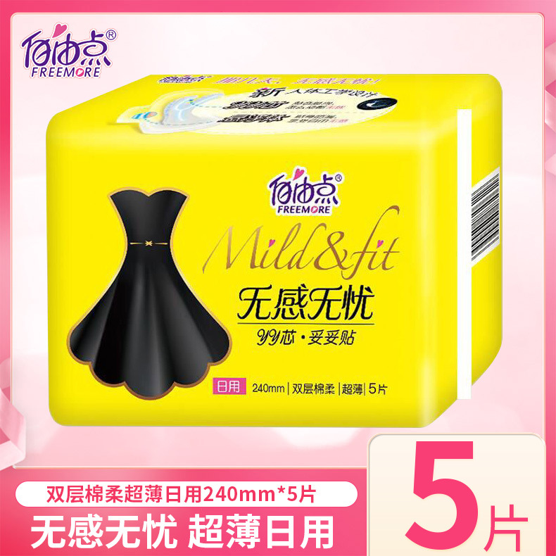 自由点卫生巾无感日用240夜用290超薄棉柔学生姨妈巾5片/