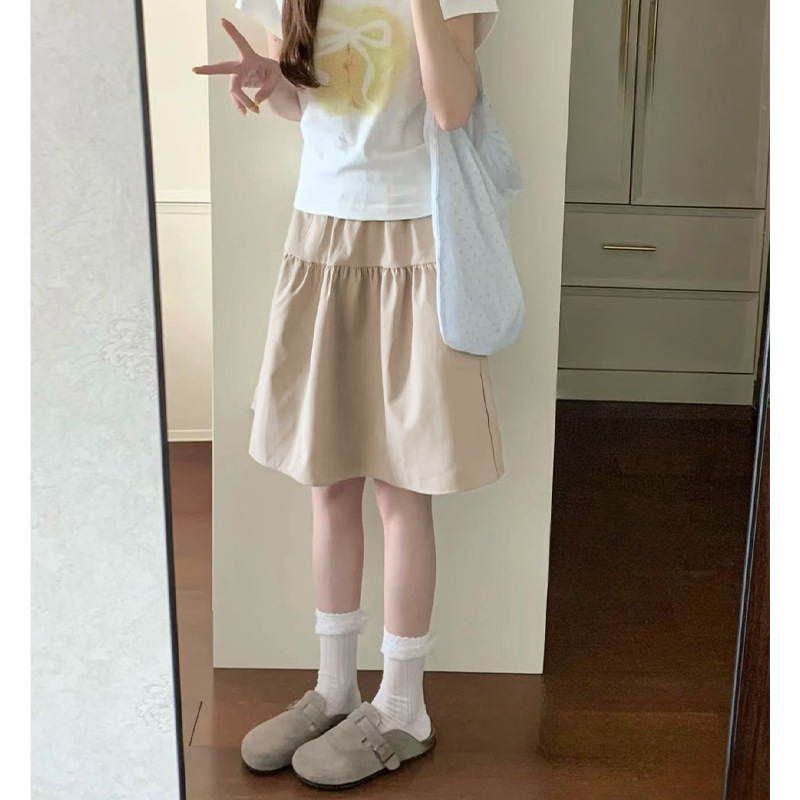 卡其色日系短裙女夏季2025新款高腰显瘦a字伞裙学院风速干半身裙