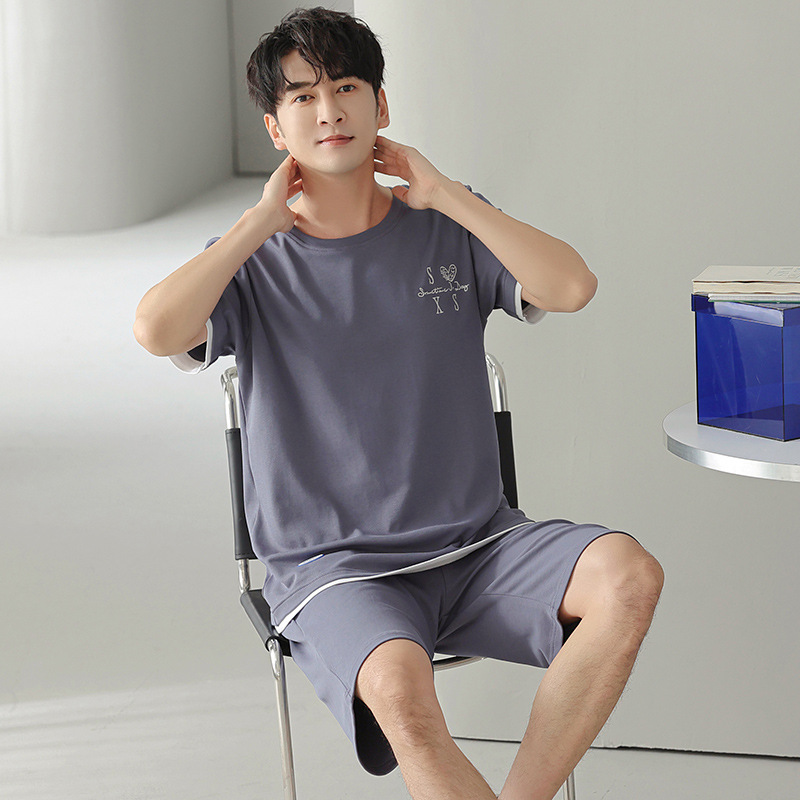 纯棉短袖短裤睡衣男士新款春夏天薄套装青少年圆领修身家居服