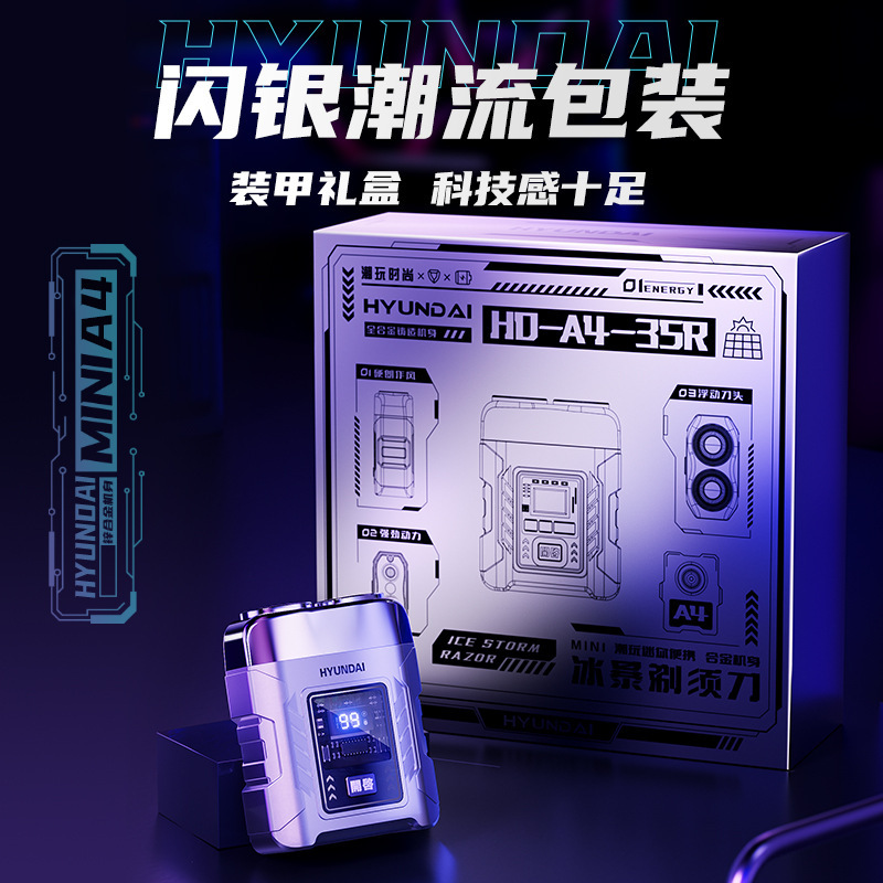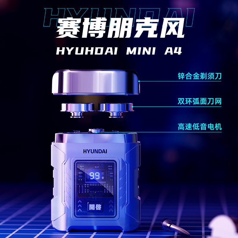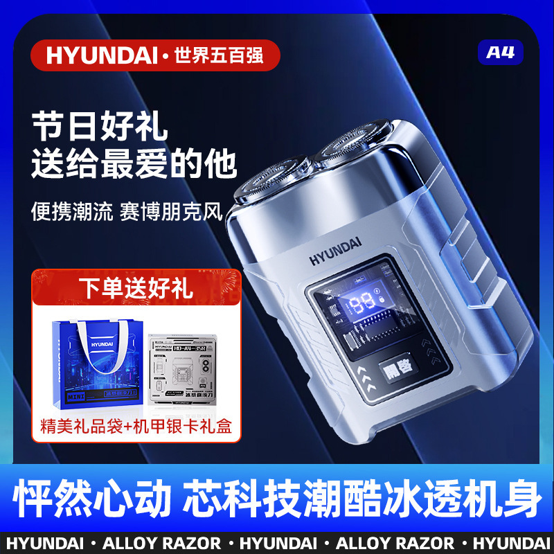 严选HYUNDAI机甲刮胡刀电动剃须刀 旅行便携迷你须胡刀男士水洗