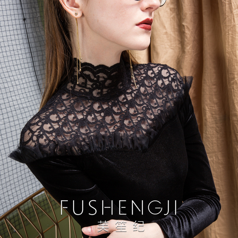 秋冬新款洋气小高领丝绒打底衫复古宫廷内搭欧货小衫