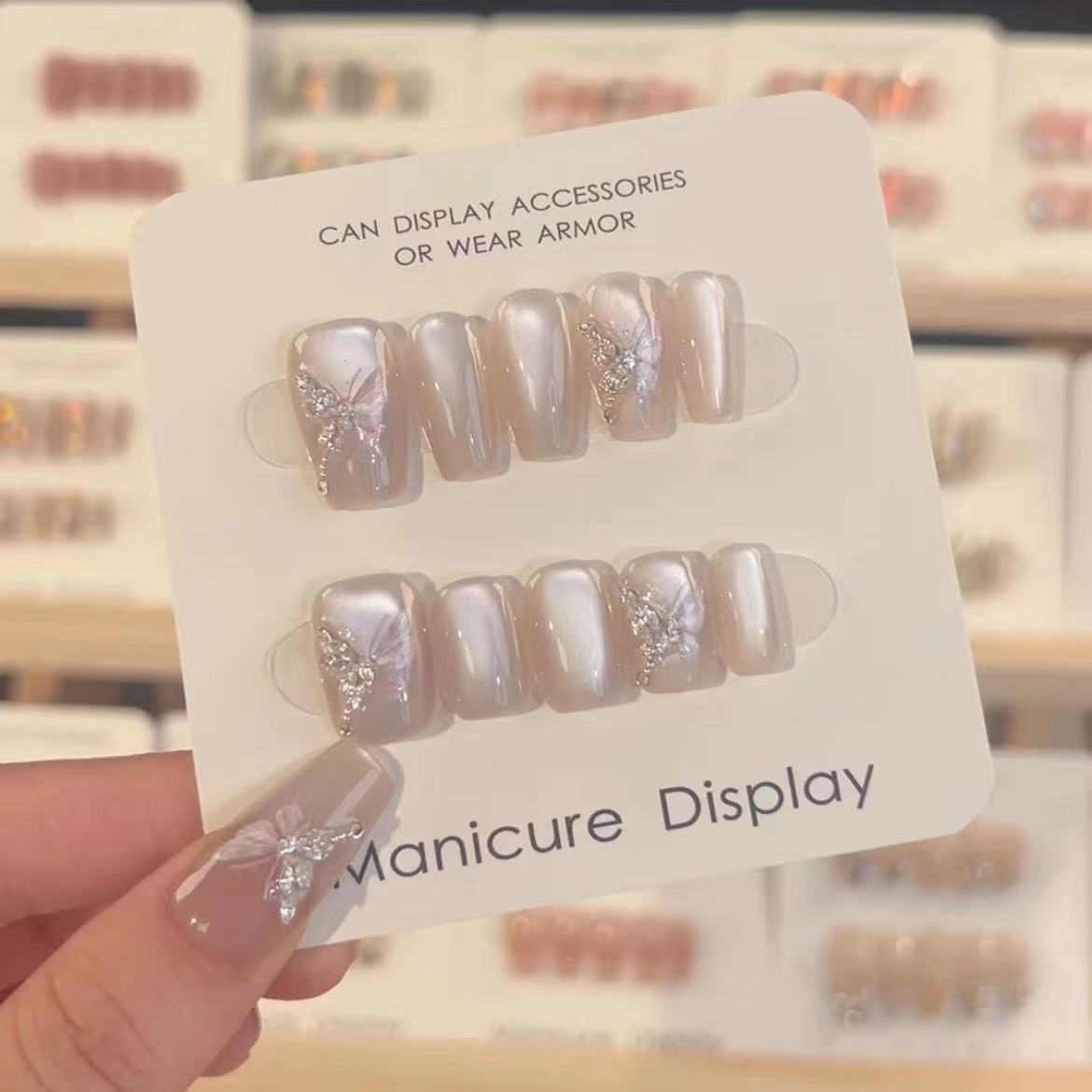 纯手工光疗穿戴甲上春山批发成品重复使用美甲贴片可拆卸猫