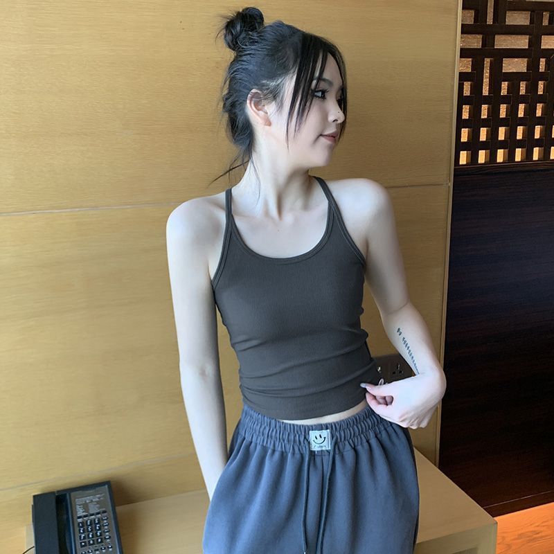 时尚挂颈美背小吊带背心女内搭2025夏季热辣性感高腰短款上衣外穿