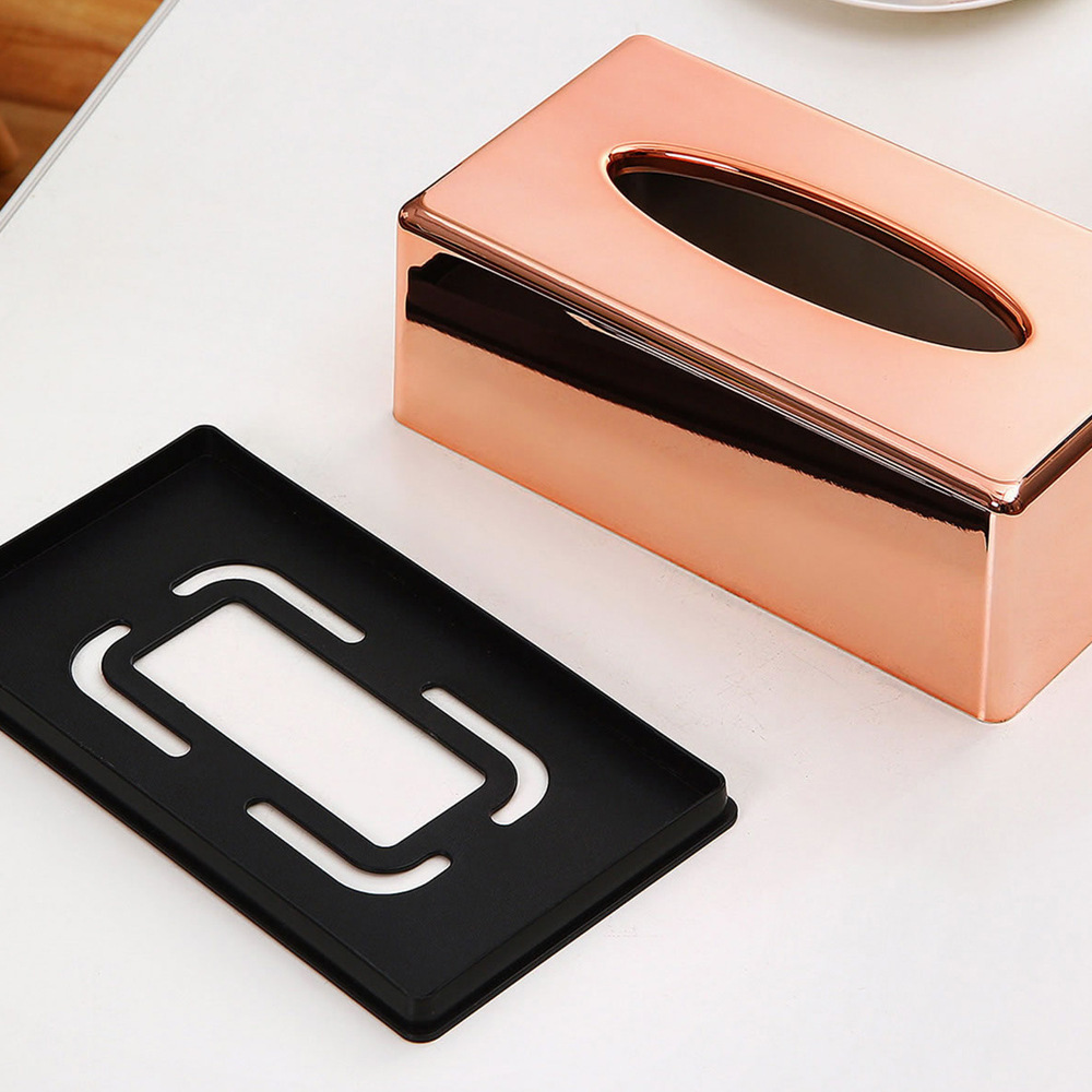 ABS电镀玫瑰金纸巾盒家用客厅桌面抽纸盒办公室创意面巾纸收纳盒