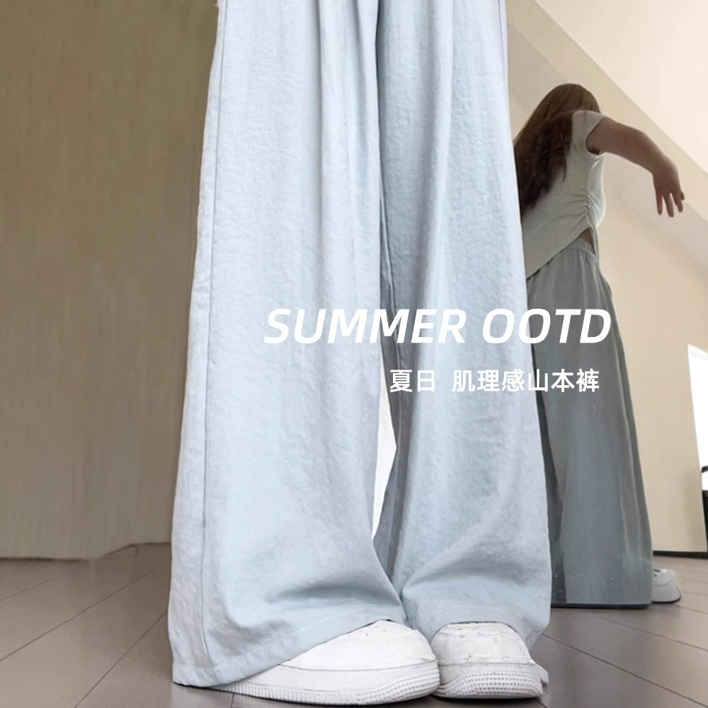 抖音质量蓝色山本裤女2025新款高腰宽松显瘦直筒奶芙裤慵懒阔腿裤