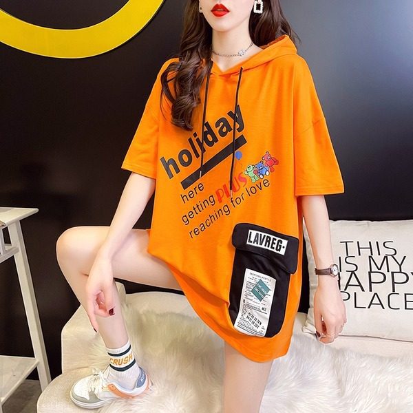 棉短袖t恤女宽松ins潮夏季新款学生洋气显瘦休闲连帽衫