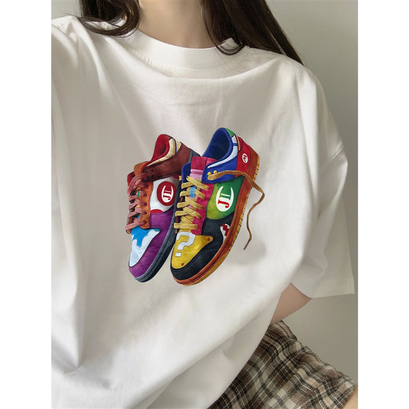 日版夏季oversize短袖t恤女情侣宽松百搭卡通印花纯棉半袖