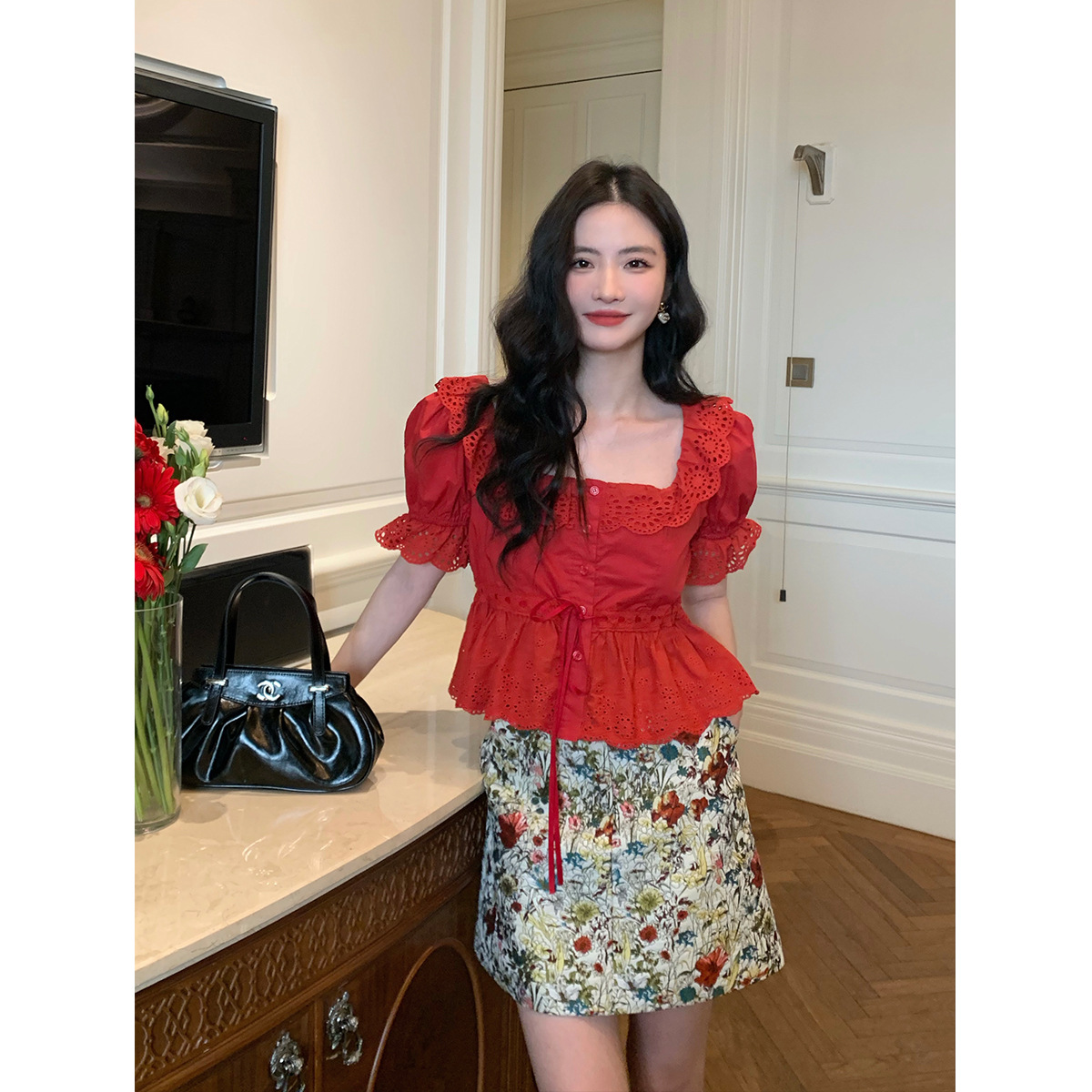 诠释美 NEW OPEN夏法式蕾丝花边系带上衣女气质显白显瘦81288