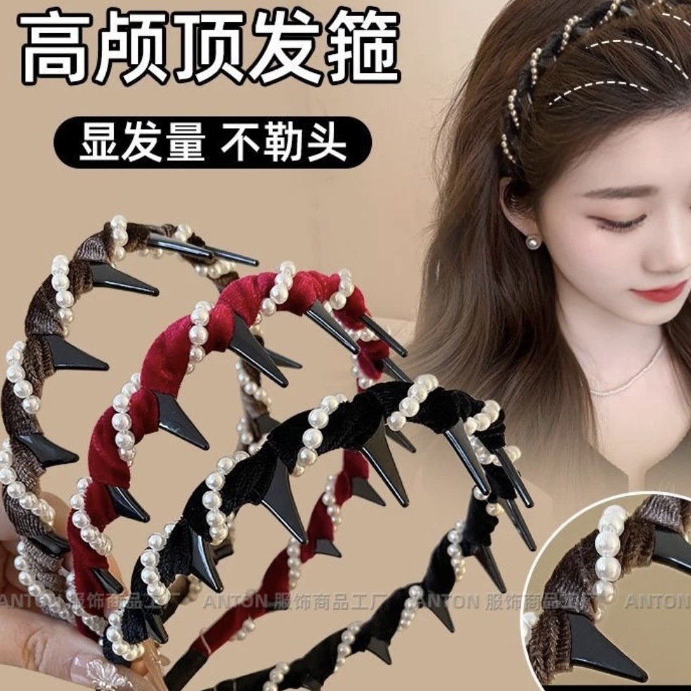 高颅顶发箍复古波浪珠珠女款秋冬洗脸不勒头发卡带齿防滑蓬松头箍
