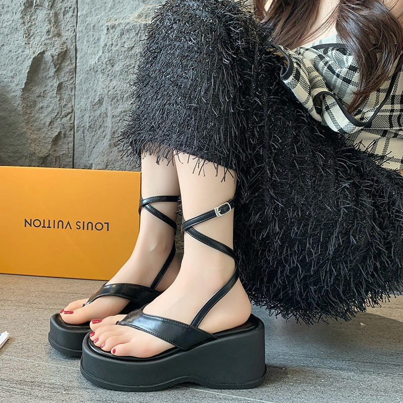 时尚气质黑色法式厚底罗马凉鞋女款新款夏季外穿增高仙女鞋
