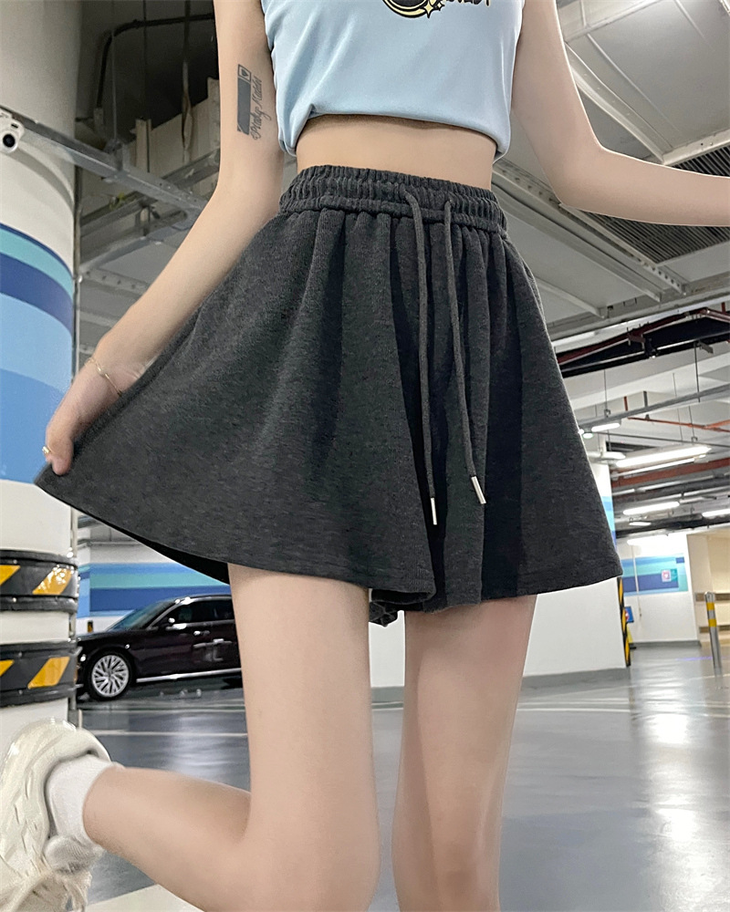 小个子夏季高级灰高腰显瘦短裤女宽松垂感阔腿裤松紧腰休闲裤裙薄