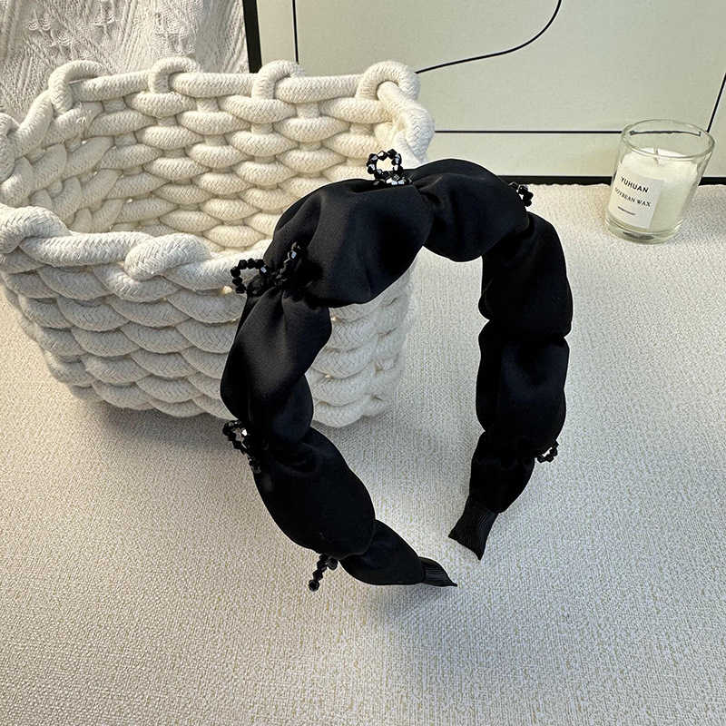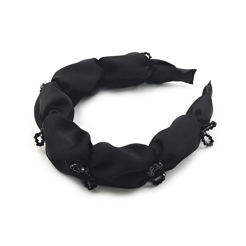 韩国高级感网红布艺宽边压发窟黑色系水晶发箍高颅顶褶皱发饰女