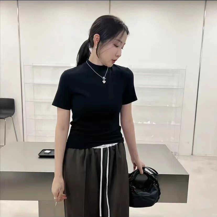老板娘同款小立领短袖T恤新款时尚百搭上衣半高领修身打底衫女夏
