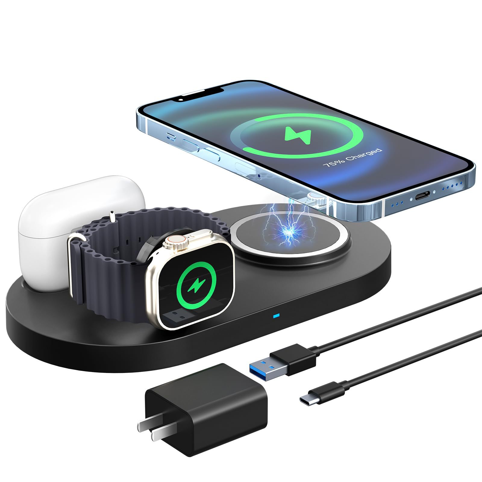 跨境新款Magsafe磁吸三合一无线充电器手表无线充多功能手机支架