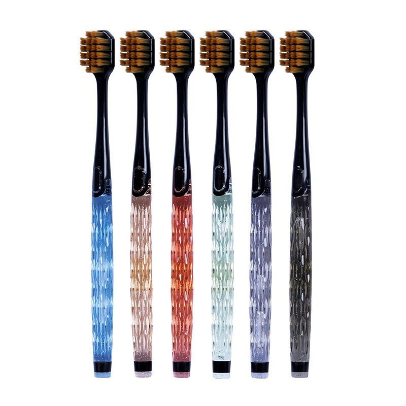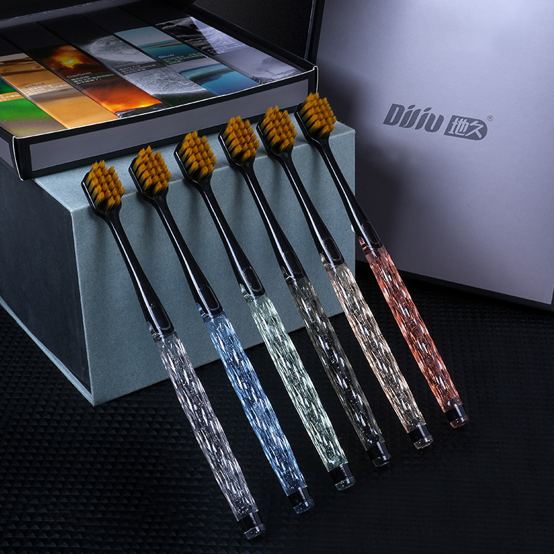 地久高级日式轻奢牙刷套装六支装水晶柄成人家用宽头软毛牙刷