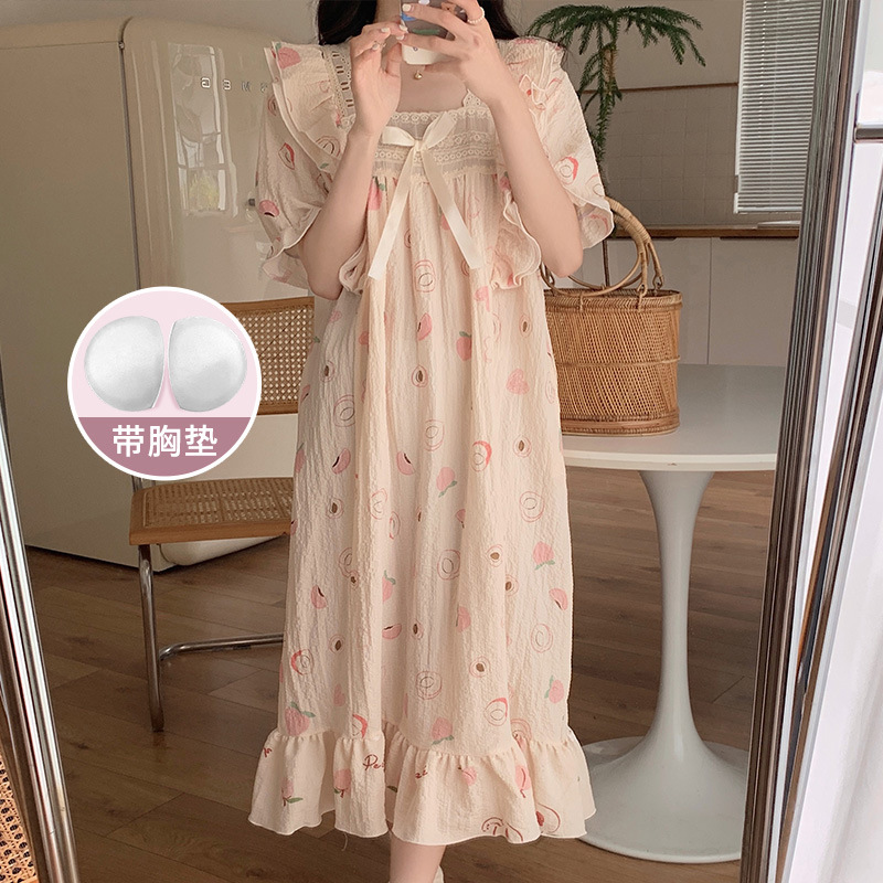 睡裙女带胸垫夏季款泡泡棉短袖睡衣甜美可爱家居服可外穿